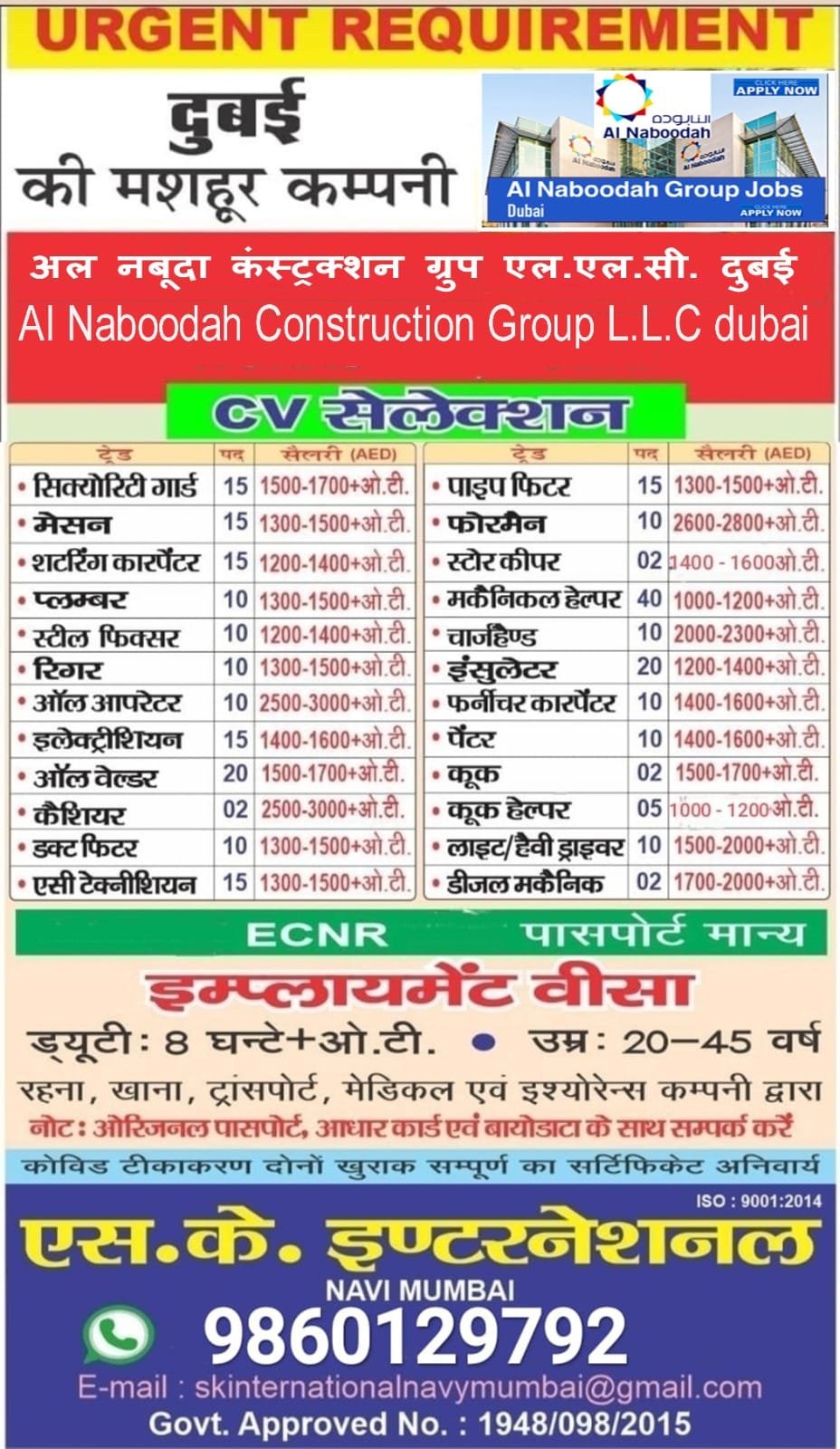 अल नबूदा कंस्ट्रक्शन ग्रुप एल. एल. सी. दुबई Al Naboodah Construction Group L.L.C dubai CV सेलेक्शन