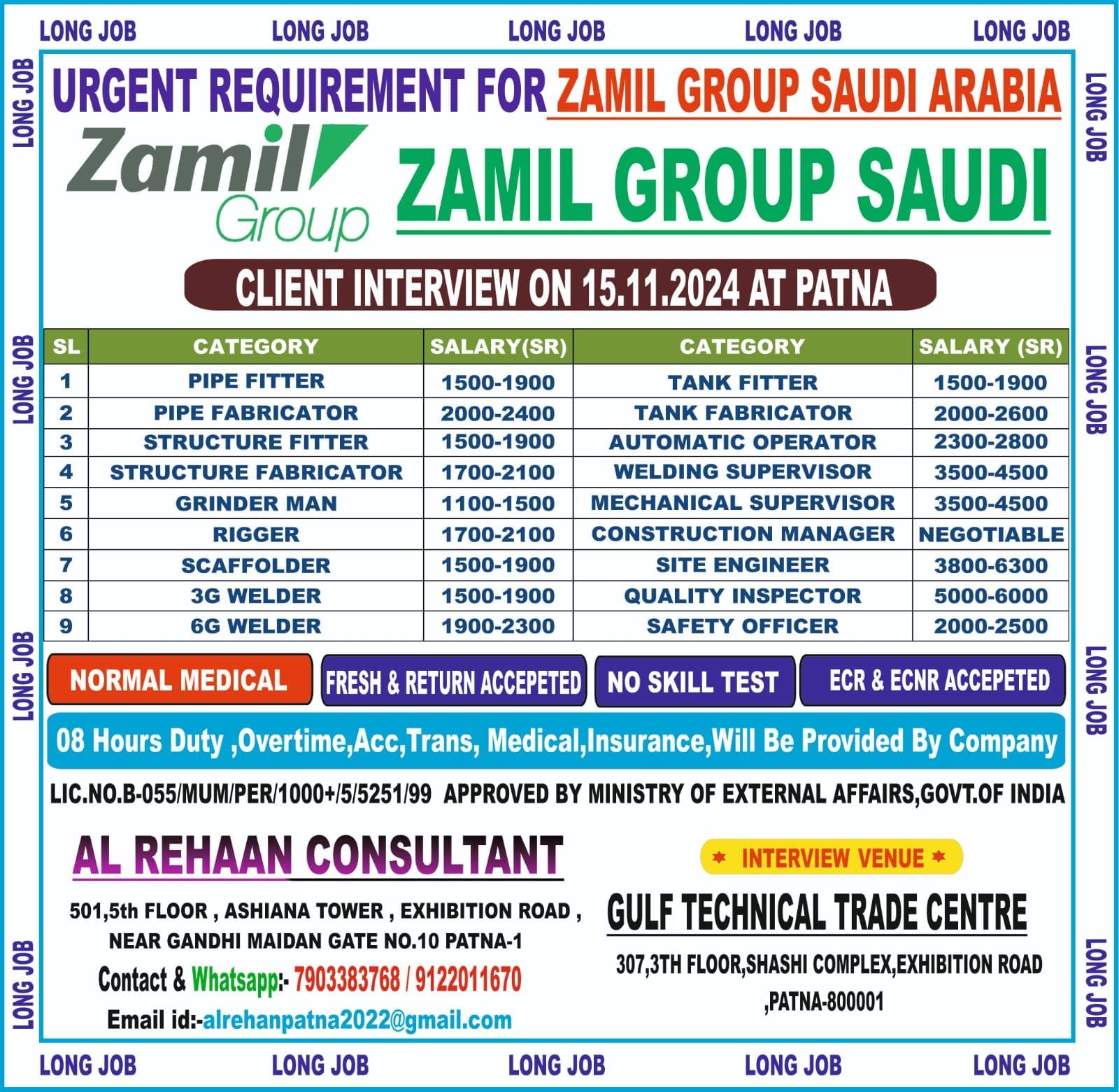 कृपया अच्छे से पढ़ें।Please read carefully. [नोट: हम वास्तविक नौकरियां प्रदान करने का प्रयास करते हैं। यह सारे रिक्वायरमेंट ऑनलाइन अपडेट होती है। भर्ती प्रक्रिया में हमारी कोई भूमिका नहीं है। कृपया नौकरी की पेशकश स्वीकार करने/ उन्हें कोई पैसा / पासपोर्ट देने से पहले भर्ती एजेंट /ऑफिस के बारे में जांच/पूछताछ करें] ⚖️-हम अपने ऐप पर किसी भी नियोक्ता या एजेंसी से किसी भी धोखाधड़ी अधिनियम के लिए ज़िम्मेदार नहीं हैं [Note: We try to provide genuine jobs. All these requirements are updated online. We have no role in the recruitment process. Please check/enquiry about the recruitment agent/office before accepting the job offer/giving them any money/passport.] ⚖️-We are not responsible for any fraudulent act from any employer or agency on our app Any Inquiry please Contact us (ubjob1.in) Email:- fmstarlive@post.com UP BIHAR GULF JOB, REGISTERED ON MINISTRY OF MSME, GOVT OF INDIA URN: UDYAM-BR-23-0022973