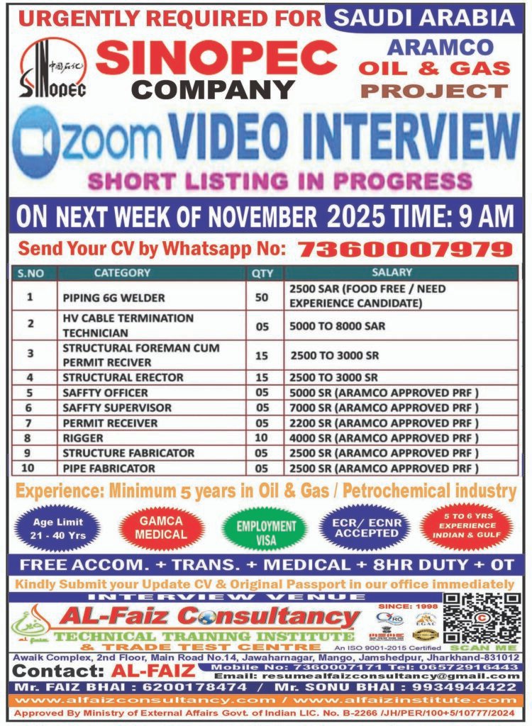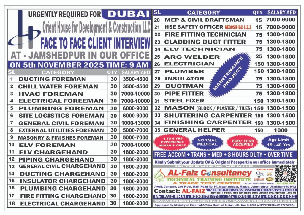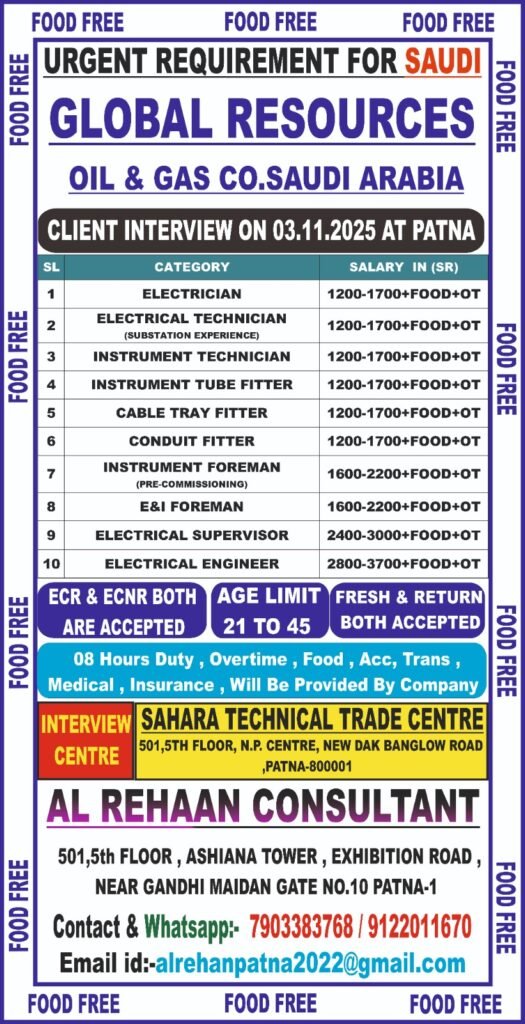 URGENTLY REQUIRED FOR REPUTED CO. KSAAssignment Abroad November 3, 2025 Read MoreURGENTLY REQUIRED FOR REPUTED CO. KSAAssignment Abroad November 3, 2025 Read MoreURGENTLY REQUIRED FOR REPUTED CO. KSAAssignment Abroad November 3, 2025 Read MoreURGENTLY REQUIRED FOR REPUTED CO. KSAAssignment Abroad November 3, 2025 Read Moreinterview schedule @ delhi 05/11/2025Assignment Abroad November 1, 2025 Read MoreWALKIN DIRECT CLIENT INTERVIEWAssignment Abroad November 1, 2025 Read MoreWALKIN DIRECT CLIENT INTERVIEW @SURATAssignment Abroad November 1, 2025 Read Morewalkin direct client interview @ 6/11/2025Assignment Abroad November 1, 2025 Read MoreURGENTLY REQD. FOR REPUTED COMPANYAssignment Abroad November 1, 2025 Read MoreUrgent Requirement for SAUDI ARABIA M/S SINOPEC COMPANY – Client Interview At Jamshedpur on NEXT WEEK OF NOVEMBER 2025Assignment Abroad November 1, 2025 Read MoreUrgent Requirement for DUBAI M/S ALEMCO COMPANY – Client Interview At Jamshedpur on 6 NOVEMBER 2025Assignment Abroad November 1, 2025 Read MoreAssignment Abroad Times – 01st November 2025Assignment Abroad November 1, 2025 Read MoreURGENTLY REQUIRED FOR REPUTED CO. KSAAssignment Abroad October 31, 2025 Read MoreURGENTLY REQUIRED FOR REPUTED CO. KSAAssignment Abroad October 31, 2025 Read MoreURGENTLY REQUIRED FOR REPUTED CO. KSAAssignment Abroad October 31, 2025 Read MoreUrgent Requirement for SAUDI M/S ALLIED STAR COMPANY – Client Interview At Jamshedpur on 1ST WEEK OF NOVEMBER 2025Assignment Abroad October 30, 2025 Read MoreUrgent Requirement for DUBAI ORIENT COMPANY – Online Client Interview At Jamshedpur on 5 NOV 2025Assignment Abroad October 30, 2025 Read MoreURGENTLY REQUIRED FOR REPUTED CO. KSAAssignment Abroad October 30, 2025 Read MoreURGENTLY REQUIRED FOR REPUTED CO. KSAAssignment Abroad October 30, 2025 Read MoreURGENTLY REQUIRED FOR REPUTED CO. KSAAssignment Abroad October 30, 2025 Read MoreURGENTLY REQUIRED FOR REPUTED CO. KSAAssignment Abroad October 30, 2025 Read MoreURGENTLY REQD. FOR REPUTED COMPANYAssignment Abroad October 30, 2025 Read MoreURGENTLY REQD. FOR REPUTED COMPANYAssignment Abroad October 30, 2025 Read MoreOverseas Assignment Today 30-October-2025Assignment Abroad October 30, 2025 Read MoreURGENTLY REQUIRED FOR REPUTED CO. KSAAssignment Abroad October 29, 2025 Read MoreURGENTLY REQUIRED FOR REPUTED CO. KSAAssignment Abroad October 29, 2025 Read MoreURGENTLY REQUIRED FOR REPUTED CO. KSAAssignment Abroad October 29, 2025 Read MoreURGENTLY REQUIRED FOR REPUTED CO. KSAAssignment Abroad October 29, 2025 Read MoreURGENTLY REQUIRED FOR REPUTED CO. KSAAssignment Abroad October 29, 2025 Read MoreURGENTLY REQUIRED FOR REPUTED CO. KSAAssignment Abroad October 29, 2025 Read MoreAssignment Abroad Times – 29th October 2025Assignment Abroad October 29, 2025 Read MoreURGENTLY REQD. FOR REPUTED COMPANYAssignment Abroad October 28, 2025 Read MoreURGENTLY REQD. FOR REPUTED COMPANYAssignment Abroad October 28, 2025 Read MoreURGENTLY REQUIRED FOR REPUTED CO. KSAAssignment Abroad October 28, 2025 Read MoreUrgent Requirement for BADAR Al MULLA KUWAIT – Client Interview At Patna on 07 NOVEMBER 2025Assignment Abroad October 28, 2025 Read MoreURGENTLY REQD. FOR REPUTED COMPANYAssignment Abroad October 28, 2025 Read MoreURGENTLY REQD. FOR REPUTED COMPANYAssignment Abroad October 28, 2025 Read MoreURGENTLY REQD. FOR REPUTED COMPANYAssignment Abroad October 28, 2025 Read MoreKirby Building Systems – Kuwait (By Sinclus Marketing Services Pvt. Ltd.)Assignment Abroad October 27, 2025 Read MoreBin Sultan Group – KSA (By Soundlines Group)Assignment Abroad October 27, 2025 Read MoreSteel Structure & Fabrication Project – Qatar (By Al Sartaj Management Services)Assignment Abroad October 27, 2025 Read MoreFacilities Management Co. – UAE (By Dewan Consultants)Assignment Abroad October 27, 2025 Read MoreADNOC Shutdown Project – UAE (By ITL Group)Assignment Abroad October 27, 2025 Read MoreURGENTLY REQUIRED FOR REPUTED CO. KSAAssignment Abroad October 27, 2025 Read MoreURGENTLY REQD. FOR REPUTED COMPANYAssignment Abroad October 27, 2025 Read MoreOverseas Assignment Today 26-October-2025Assignment Abroad October 26, 2025 Read MoreUrgent Requirement for GLOBAL COMPANY SAUDI ARABIA – Client Interview At PATNA on 03th NOVEMBER 2025Assignment Abroad October 25, 2025 Read MoreURGENTLY REQD. FOR REPUTED COMPANYAssignment Abroad October 25, 2025 Read MoreURGENTLY REQD. FOR REPUTED COMPANYAssignment Abroad October 25, 2025 Read MoreURGENTLY REQD. FOR REPUTED COMPANYAssignment Abroad October 25, 2025 Read More Previous12345…53Next