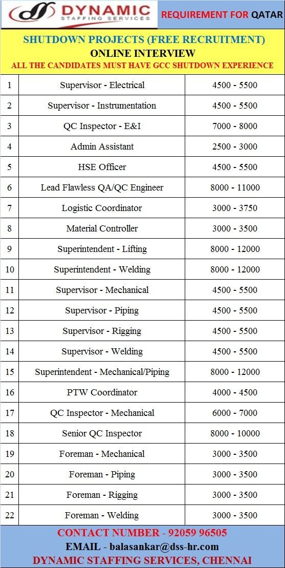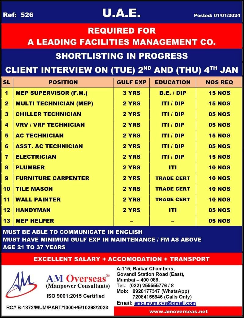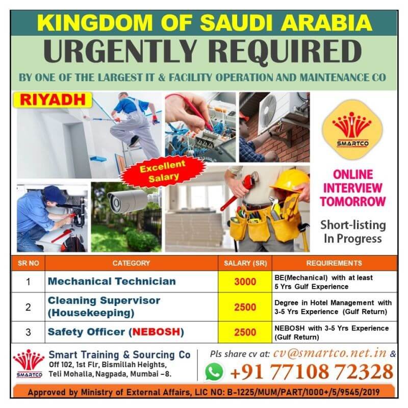 URGENTLY REQUIRED BY ONE OF THE LARGEST IT AND FACILITY OPERATION AND MAINTENANCE CO IN SAUDI ARABIA