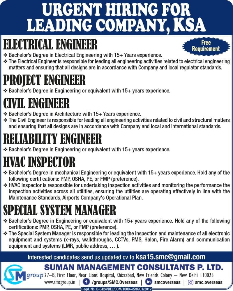 Hiring for Leading Company in Saudi Arabia – Free Recruitment