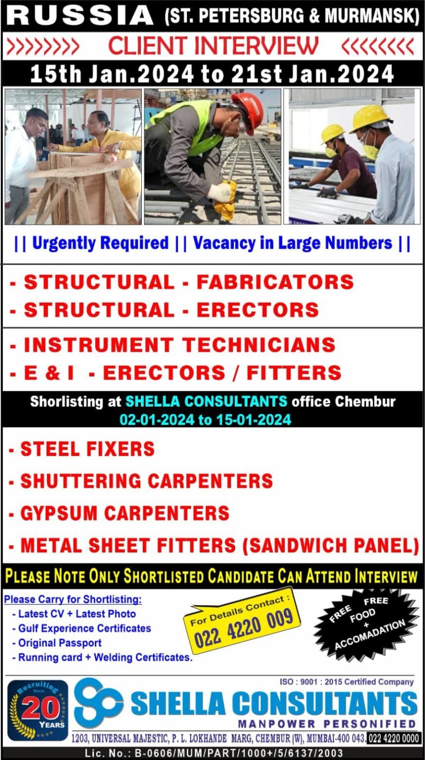 Jobs In Russia (St. Petersburg & Murmansk) – Vacancy In Large Numbers