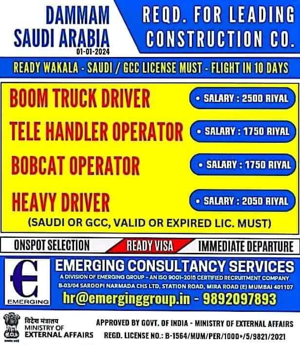 Job Vacancies For Saudi Arabia Leading Construction Company