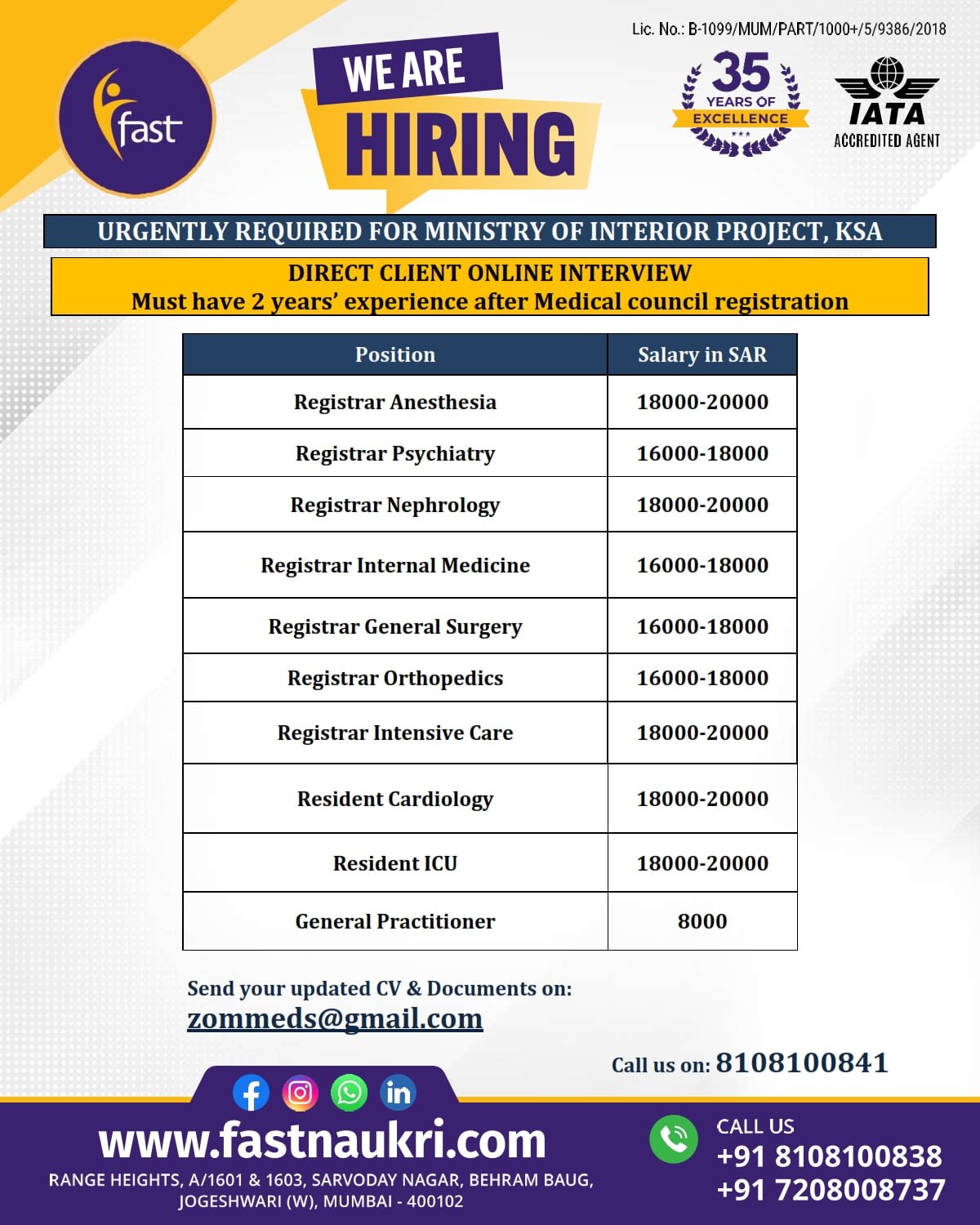 JOB VACANCY!! URGENTLY REQUIRED FOR SAUDI Location: KSA Good package Send your updated CV contactus@fastnaukri.com 8108100841 / 42 https://fastnaukri.com/ +917208008737 … Read more