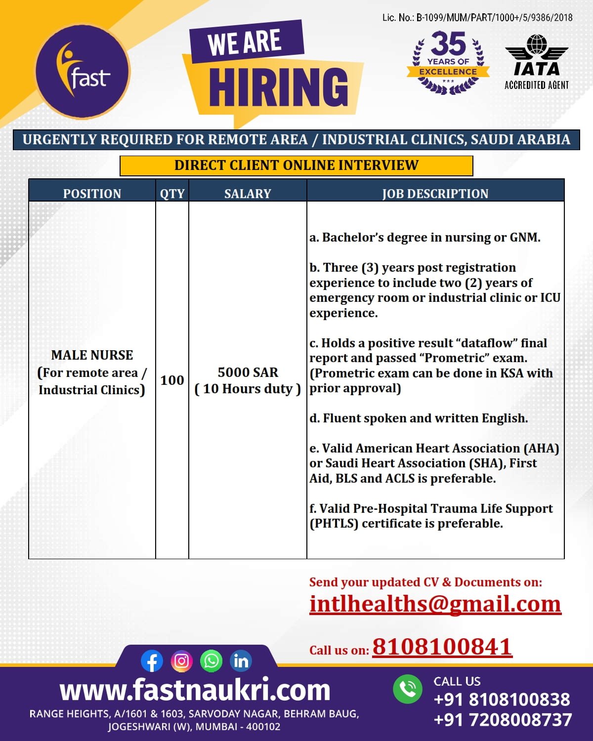 JOB VACANCY!! URGENTLY REQUIRED FOR SAUDI ARABIA Location: KSA Good package Send your updated CV contactus@fastnaukri.com 8108100841 / 42 https://fastnaukri.com/ … Read more