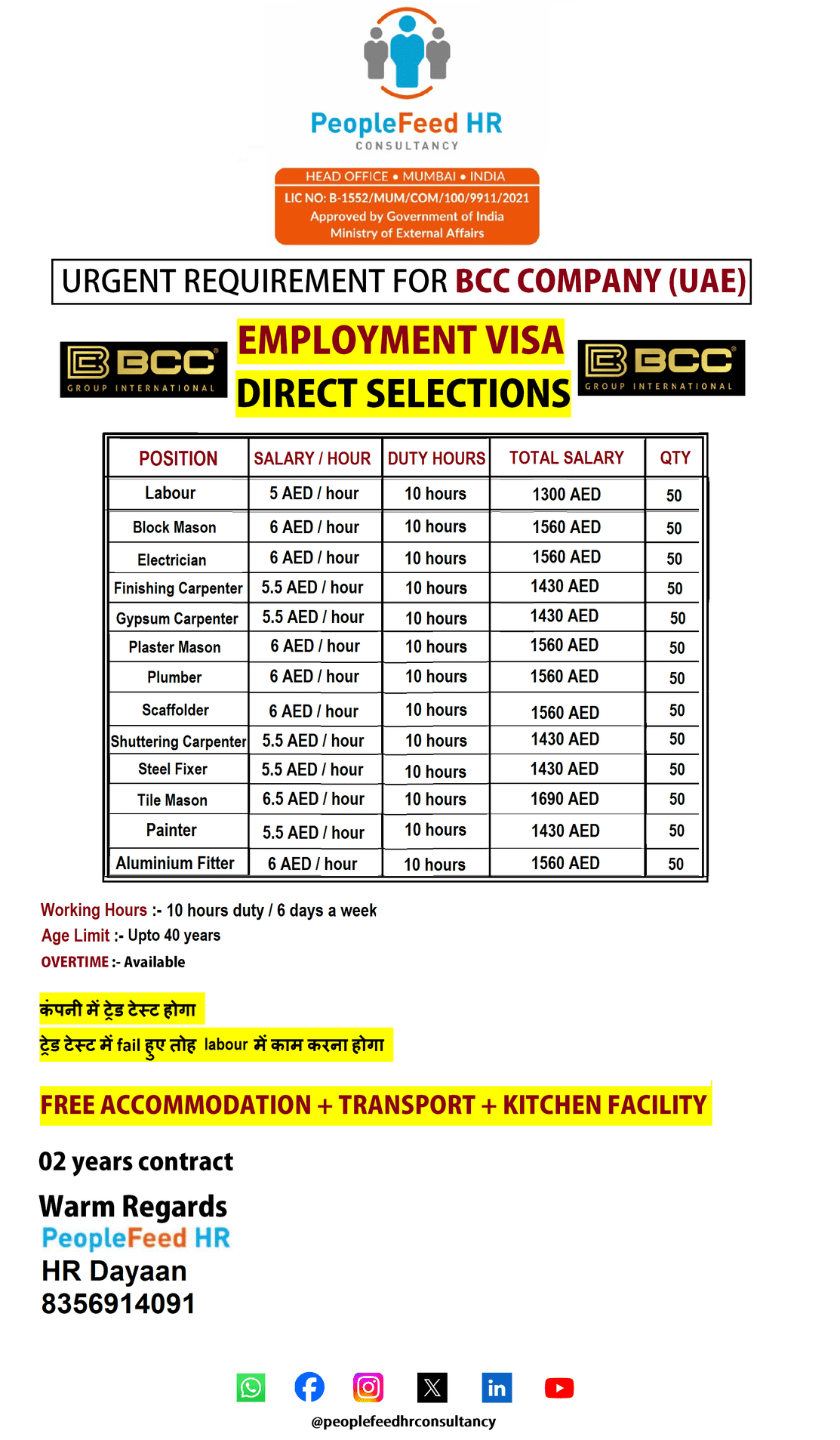 URGENT REQUIREMENT FOR SKILLED WORKERS & LABOURS IN UAE :: EMPLOYMENT VISA :: DIRECT SELECTIONS