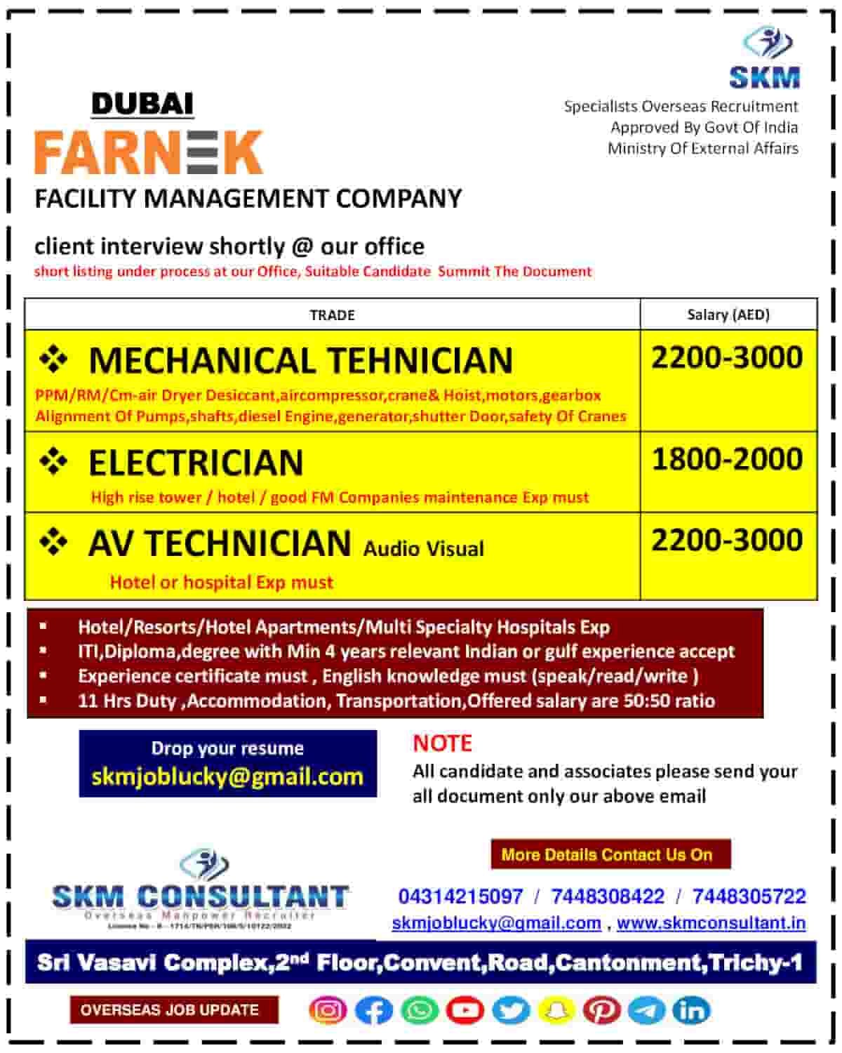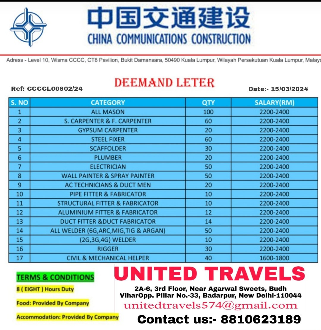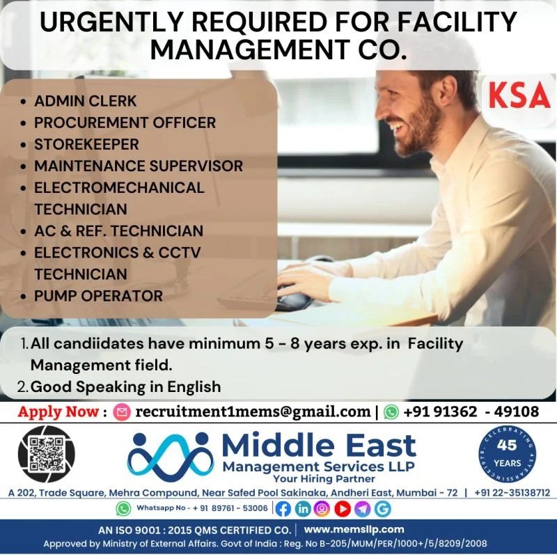 Vacancy for facility management company in Saudi Arabia