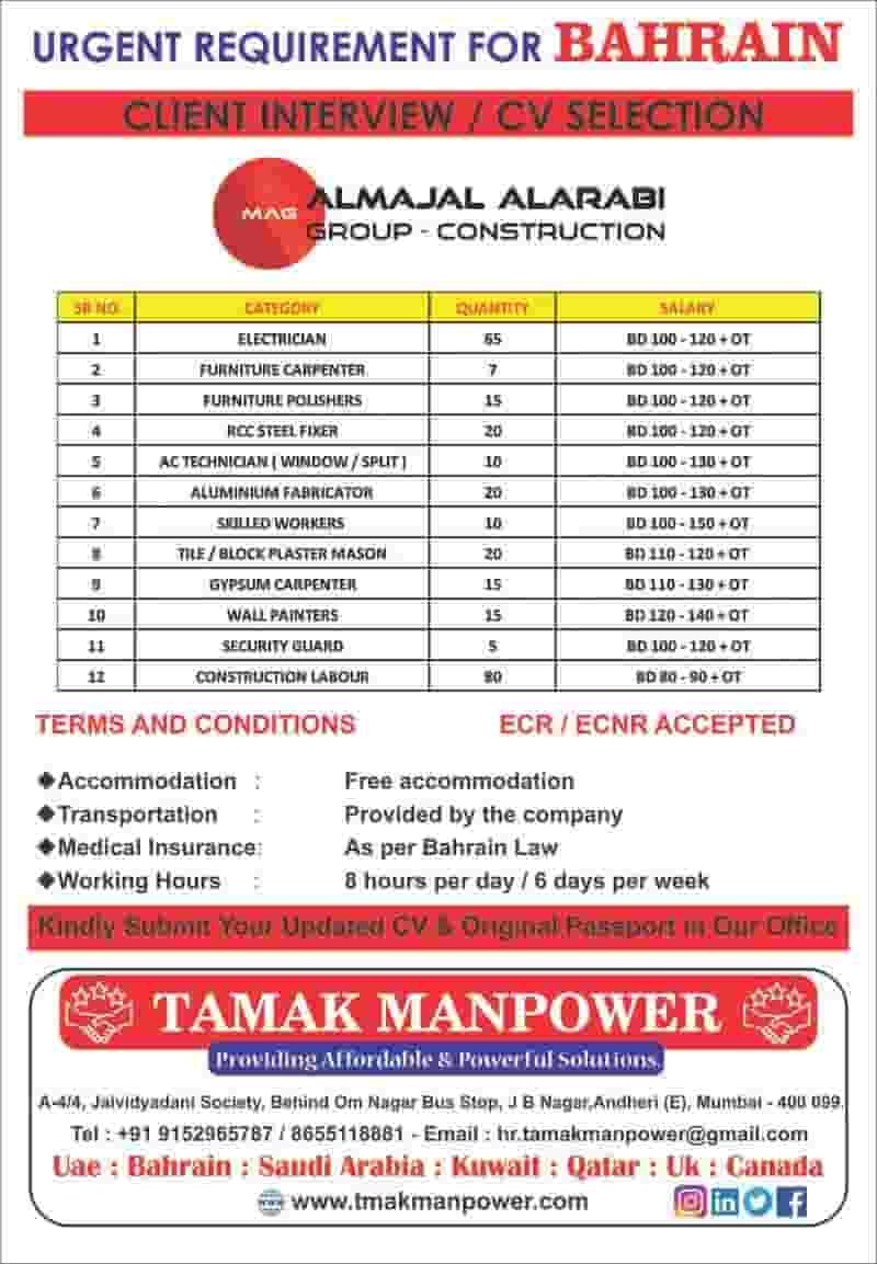 Construction Jobs For Bahrain – Cv Selection