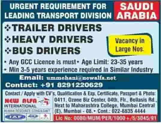 Job Openings For Leading Transport Co. In Saudi Arabia