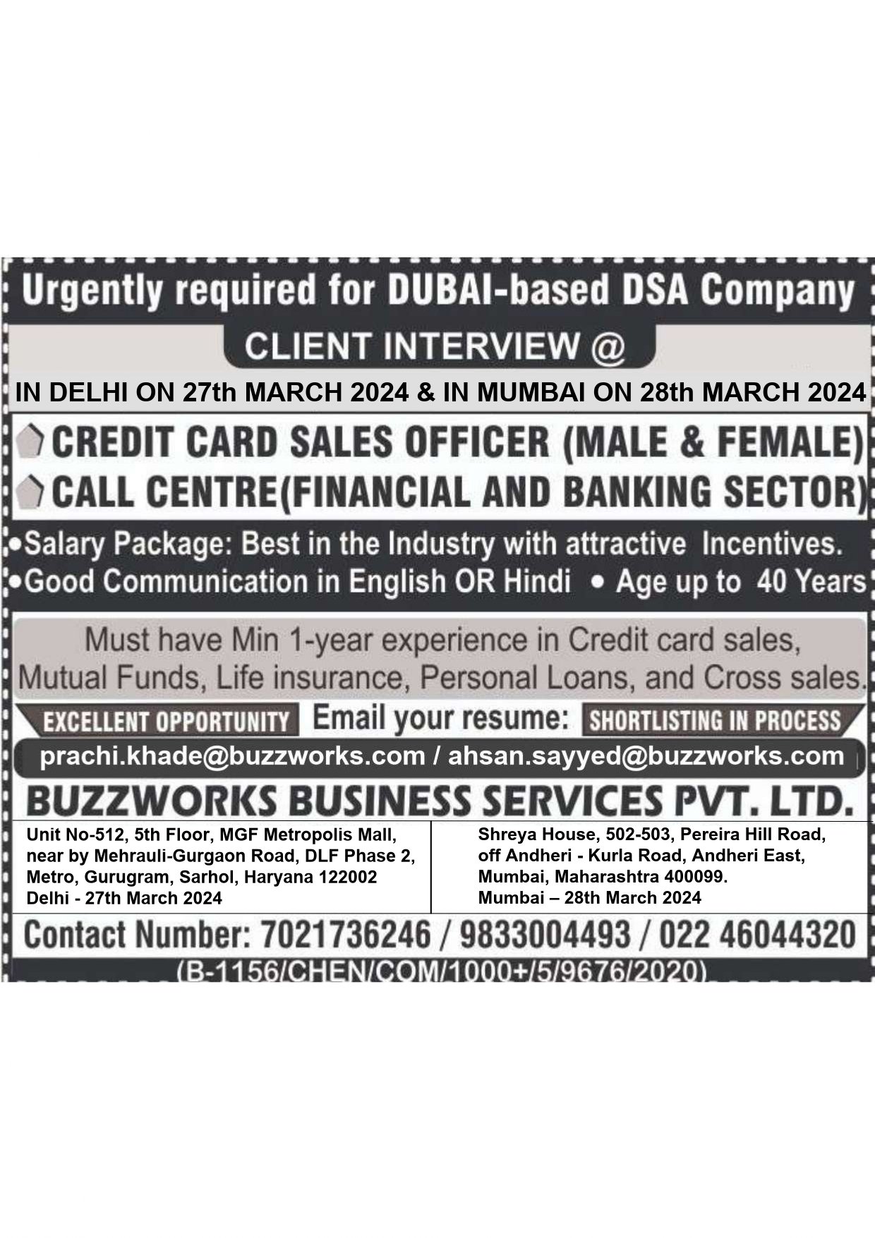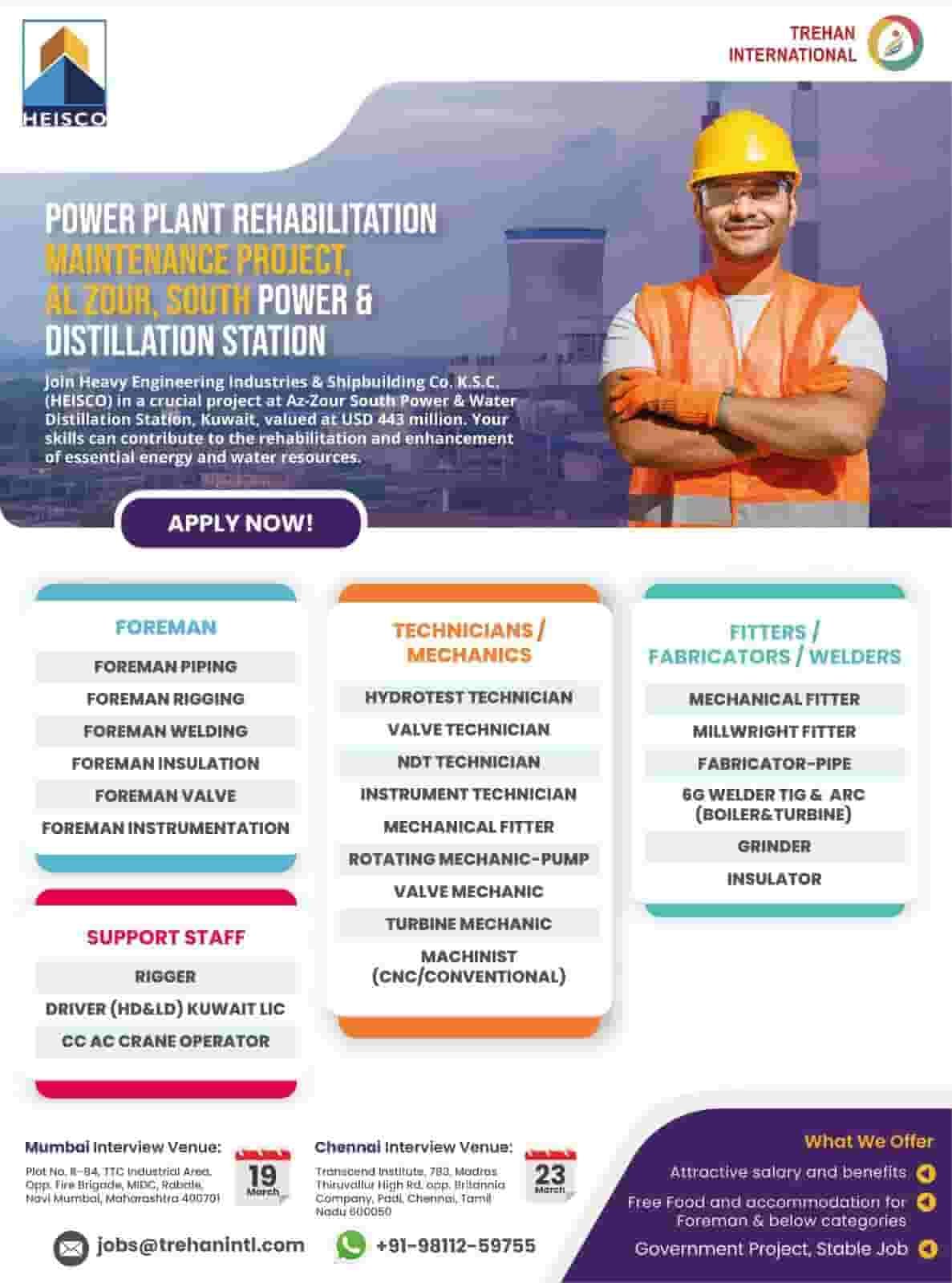 Client Interviews in MUMBAI and CHENNAI for Power Plant Project in KUWAIT