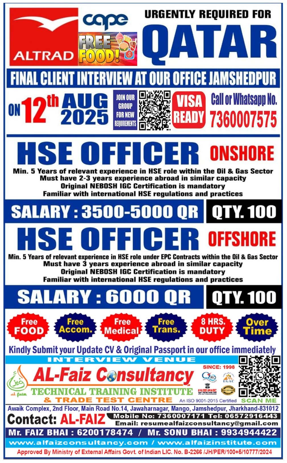 Urgent Requirement for CAPE CO QATAR – Client Interview At Jamshedpur on 12 AUGUST 2025