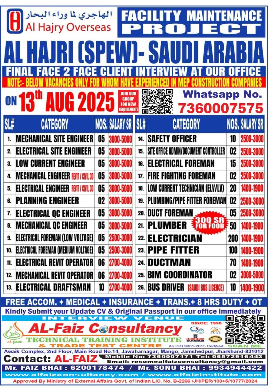 Urgent Requirement for SAUDI ARABIA, AL-HAJRI Company – Client Interview At Jamshedpur on 13 AUGUST 2025
