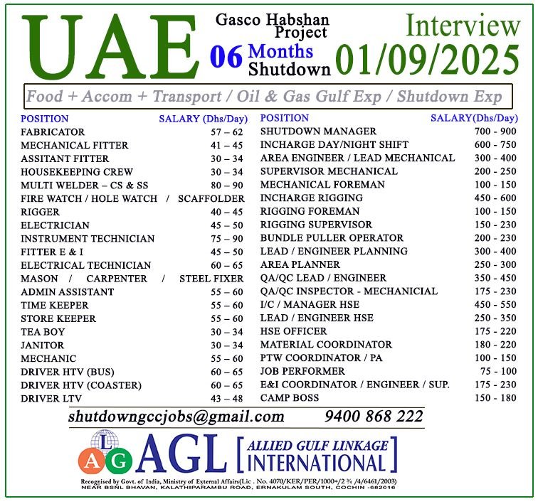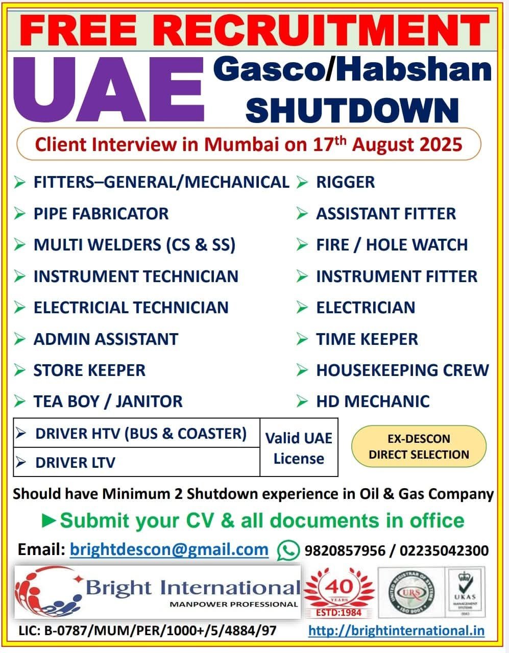 Assignment Abroad Times – Latest Gulf Job Vacancy for UAE Gasco/Habshan Shutdown