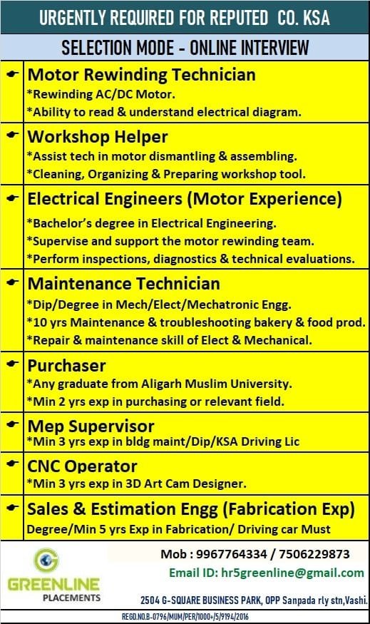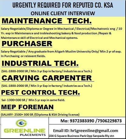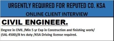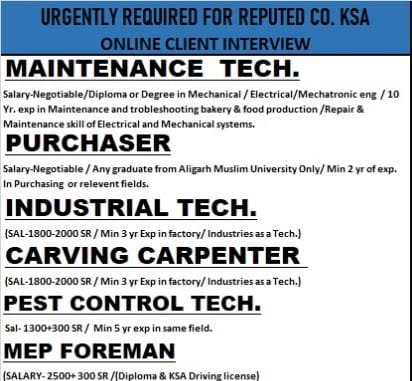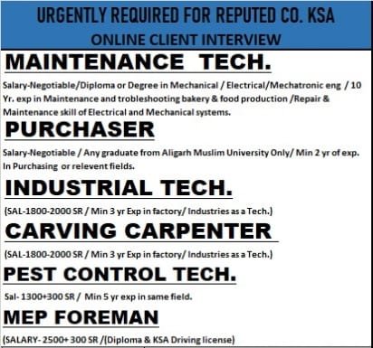 URGENTLY REQUIRED FOR REPUTED COMPANY KSA