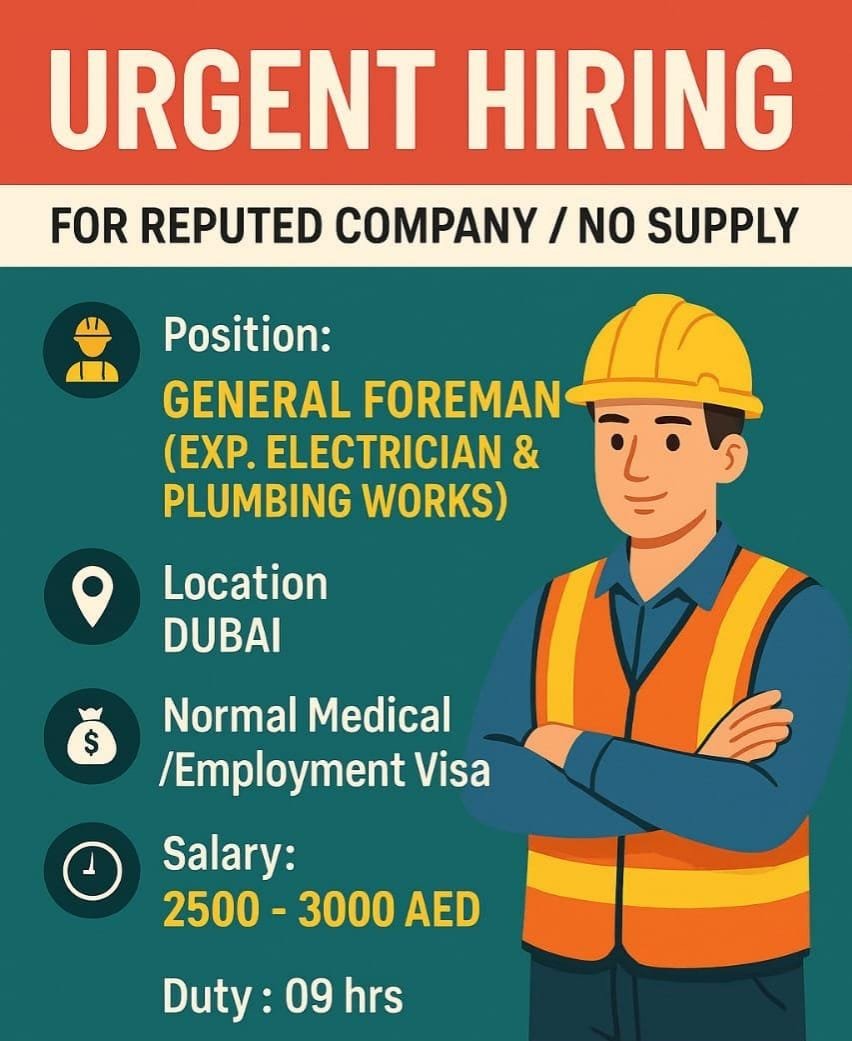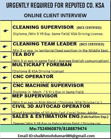 URGENTLY REQUIRED FOR REPUTED COMPANY KSA