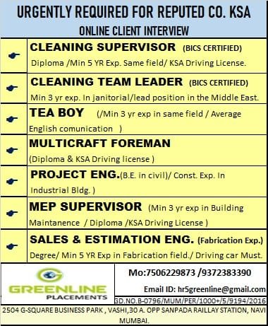 URGENTLY REQUIRED FOR REPUTED COMPANY KSA