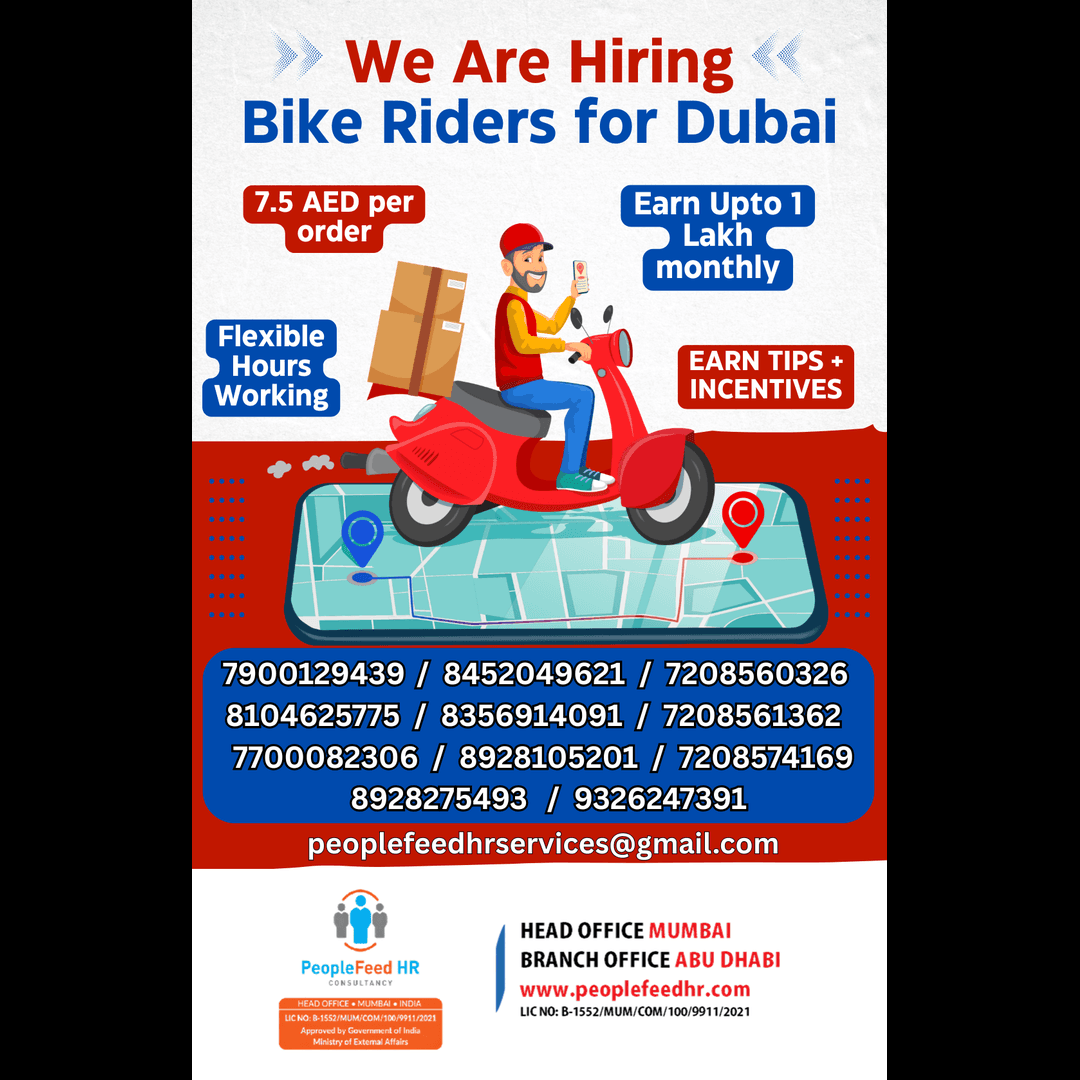 HIRING BIKE RIDERS IN UAE ::-:: LICENSE FEE DEDUCTION FROM SALARY ::-:: NO DEDUCTION FROM SALARY (BOTH OPTIONS AVAILABLE)
