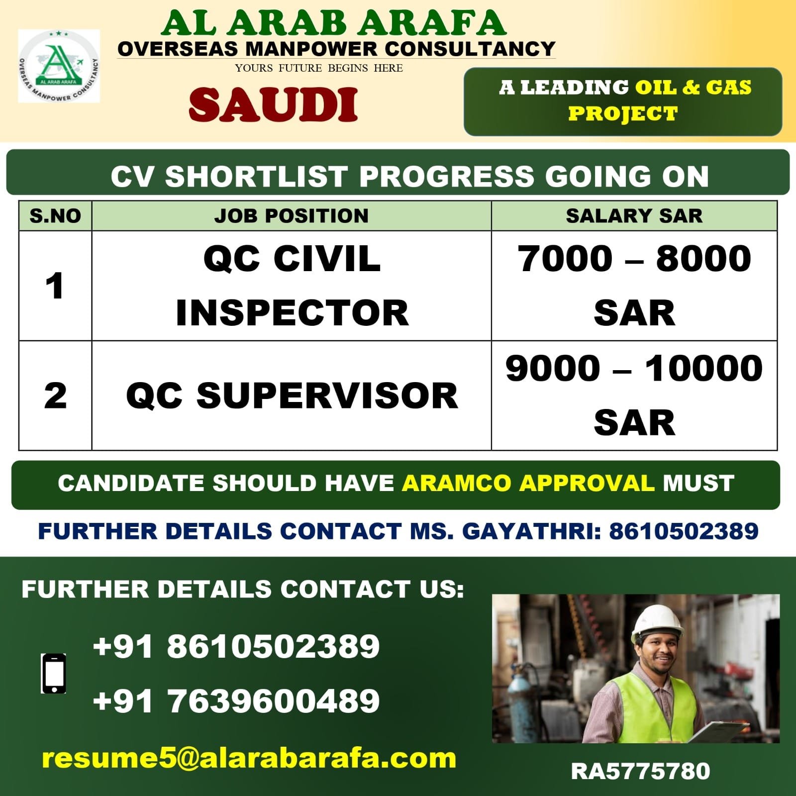 OIL & GAS COMPANY. FURTHER DETAILS KINDLY CONTACT MS GAYATHRI : +91 8610502389