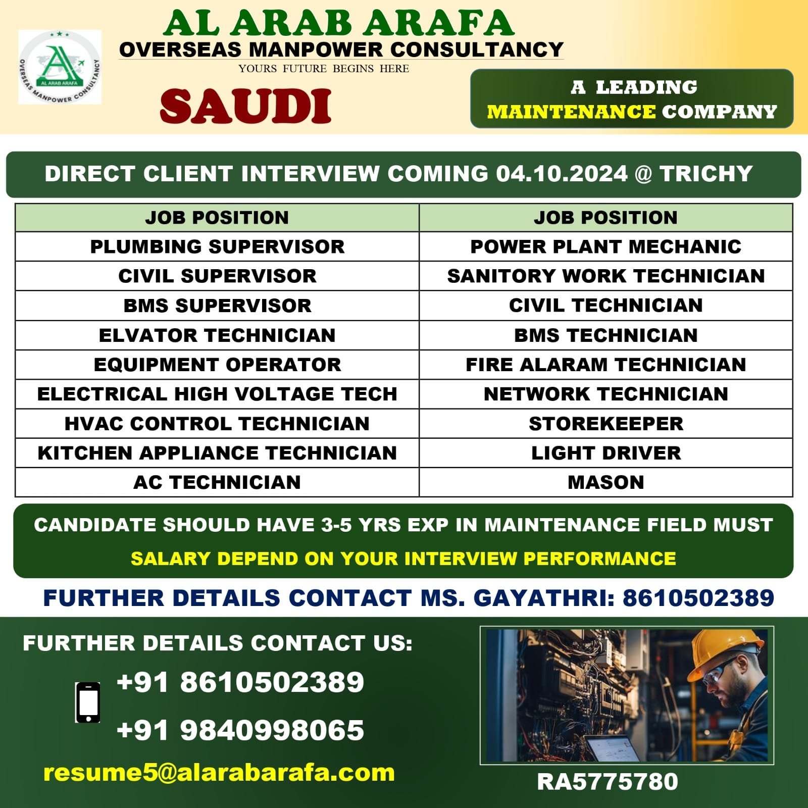 DIRECT CLIENT INTERVIEW ON 04.10.2024 @ TRICHY