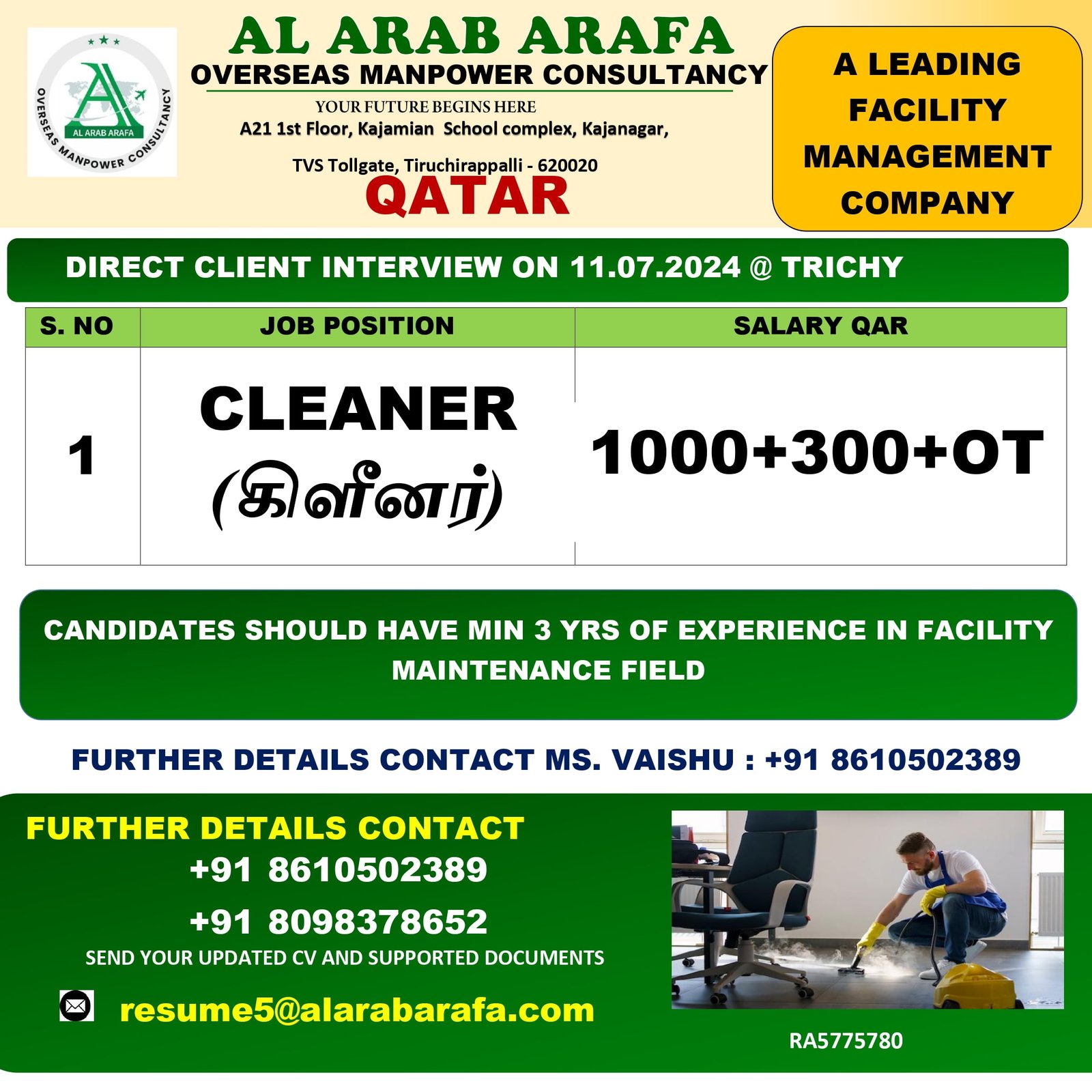 DIRECT CLIENT INTERVIEW ON 11.07.2024 @ TRICHY