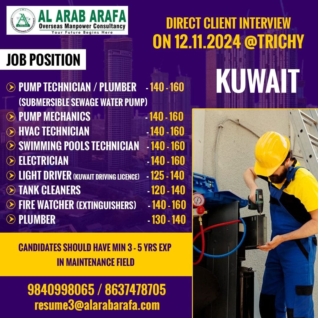 DIRECT CLIENT INTERVIEW ON 12.11.2024 @ TRICHY