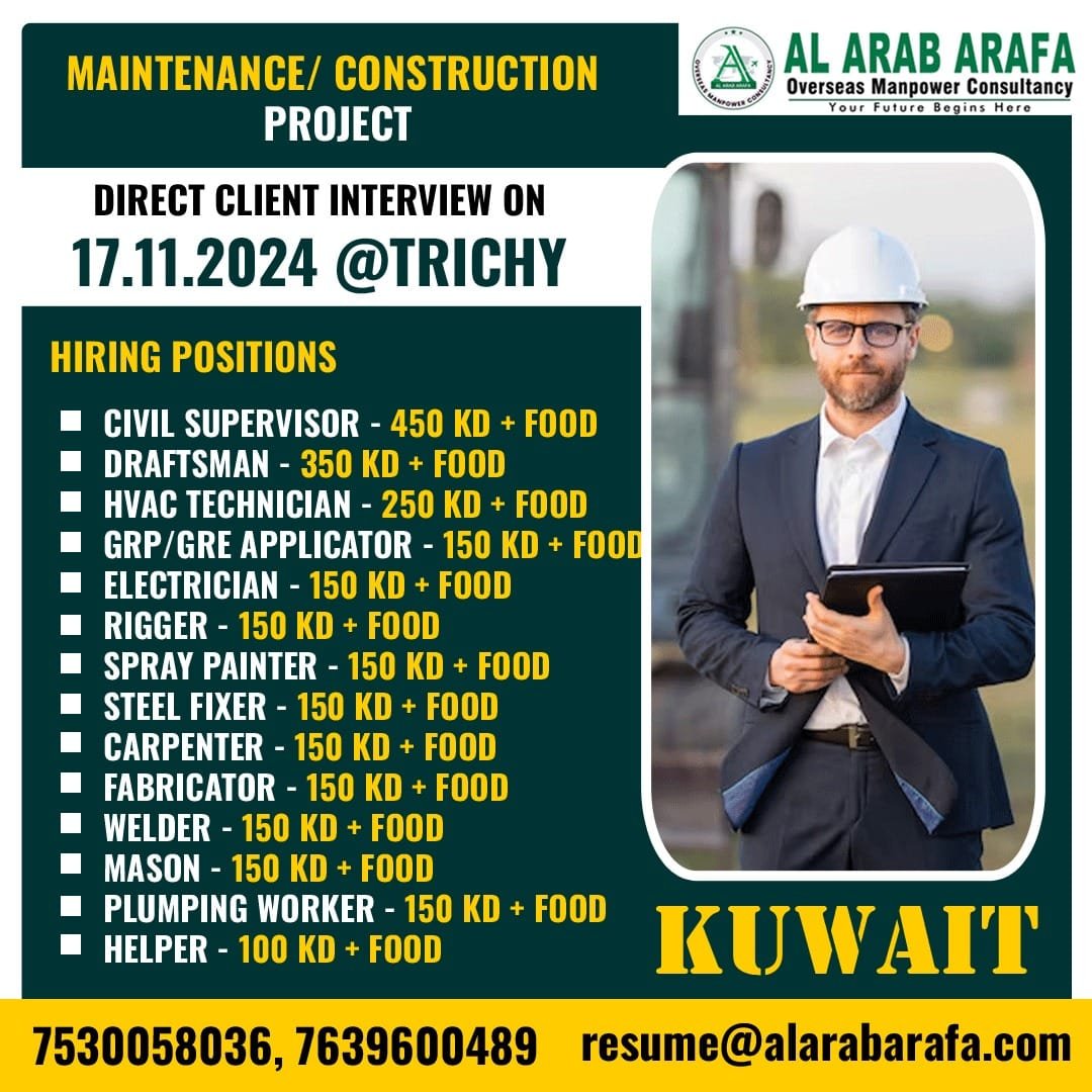 DIRECT CLIENT INTERVIEW ON 17.11.2024 @ TRICHY