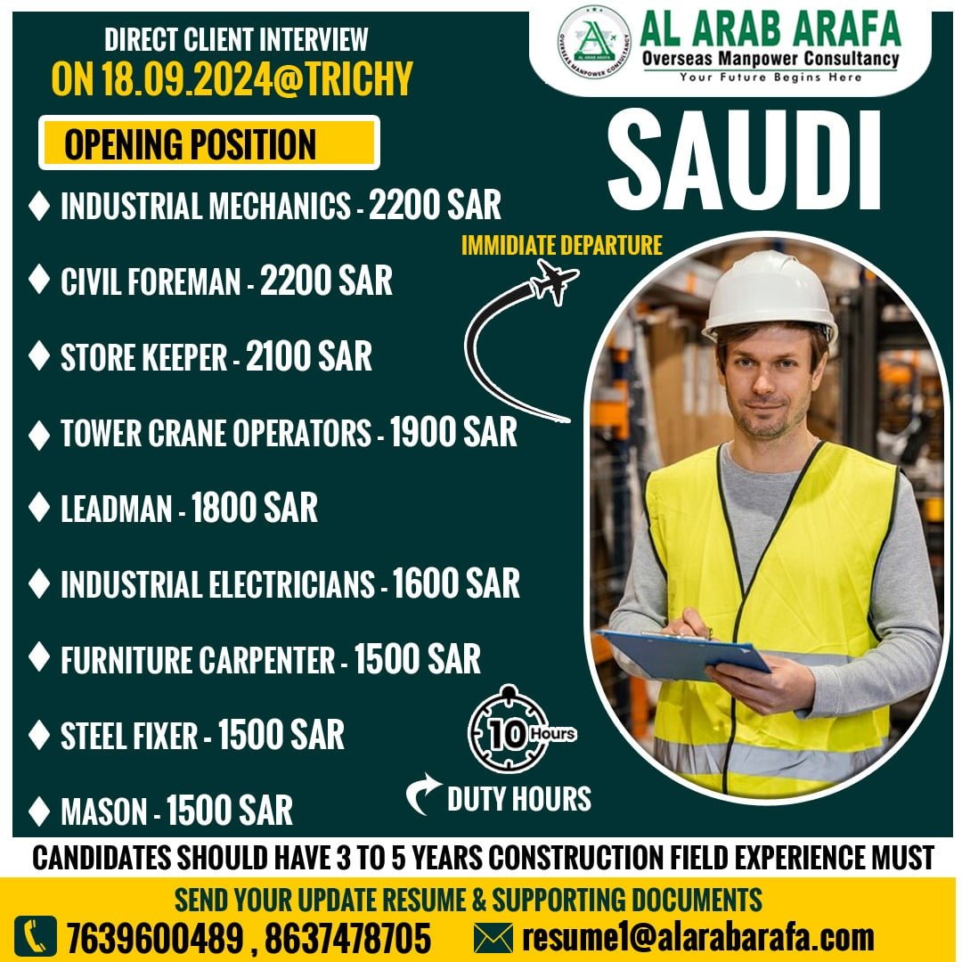 DIRECT CLIENT INTERVIEW ON 18.09.2024 @ TRICHY