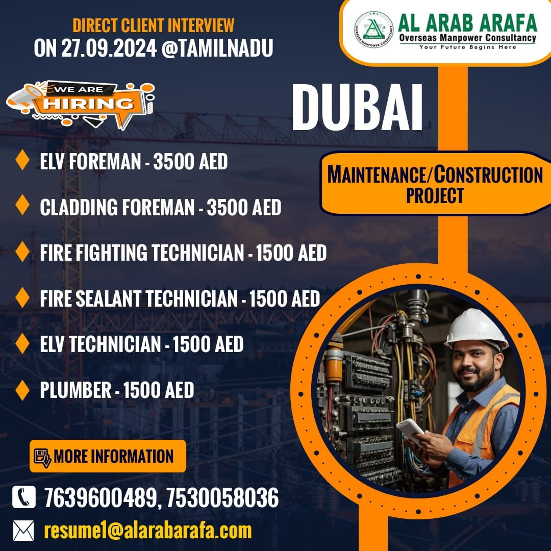 MAINTENANCE / CONSTRUCTION COMPANY. FURTHER DETAILS KINDLY CONTACT MS DIVYA: