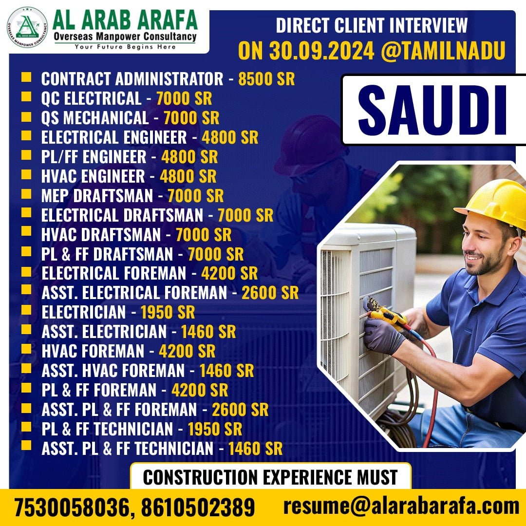 DIRECT CLIENT INTERVIEW ON 30.09.2024 @ TAMIL NADU