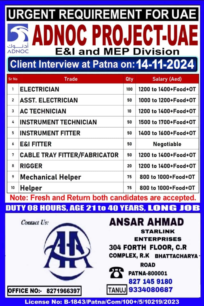 Gulf Job vacancyElectricianBy Assignment AbroadPublished on: November 12, 2024 ---Advertisement---Starlink INTERPRISES Mob no 9334080687Related Posts:Bin Sultan Group – KSA (By Soundlines Group)Overseas Assignment: Mauritius Job Openings –…Overseas Assignment: NSH Qatar 9-Month Project –…Overseas Assignment – Russia Construction Jobs |…Overseas Assignment – Qatar Ministry of Education…Overseas Assignment 23-October-2025 Gulf job vacancy