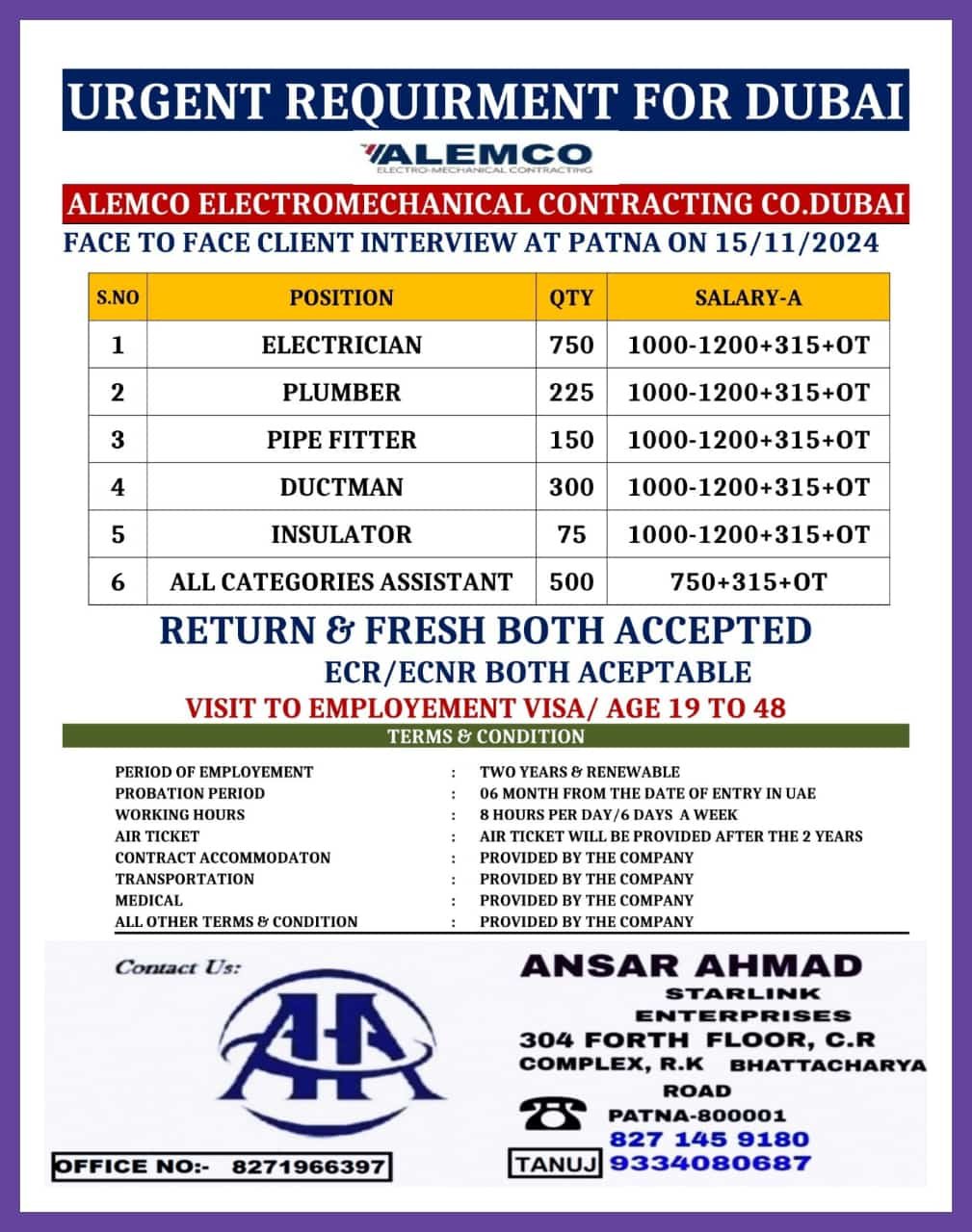 Gulf Job vacancyElectrician & plumberBy Assignment AbroadPublished on: October 30, 2024 ---Advertisement--- STARLINK INTERPRISES Mob no 9334080687Related Posts:Assignment Abroad Times PDF Today Newspaper, 5 November 2025URGENT REQUIREMENT FOR BIKE RIDERS IN DUBAI (UAE) ::…URGENT REQUIREMENT FOR BIKE RIDERS IN DUBAI (UAE) ::…Assignment Abroad Times – 01st November 2025Overseas Assignment Today 30-October-2025Assignment Abroad Times – 29th October 2025 Gulf job vacancy