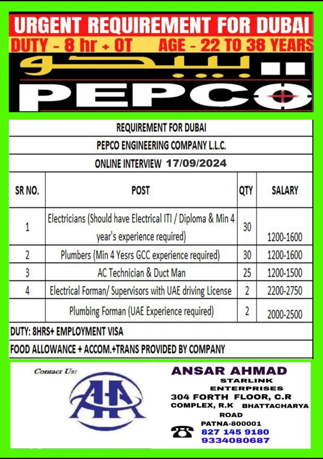 Gulf Job vacancyElectricianBy Assignment AbroadPublished on: September 13, 2024 ---Advertisement--- STARLINK ENTERPRISES MOB NO:- +91 9334080687Related Posts:Bin Sultan Group – KSA (By Soundlines Group)Overseas Assignment: Mauritius Job Openings –…Overseas Assignment: NSH Qatar 9-Month Project –…Overseas Assignment – Russia Construction Jobs |…Overseas Assignment – Qatar Ministry of Education…Overseas Assignment 23-October-2025 Gulf job vacancy