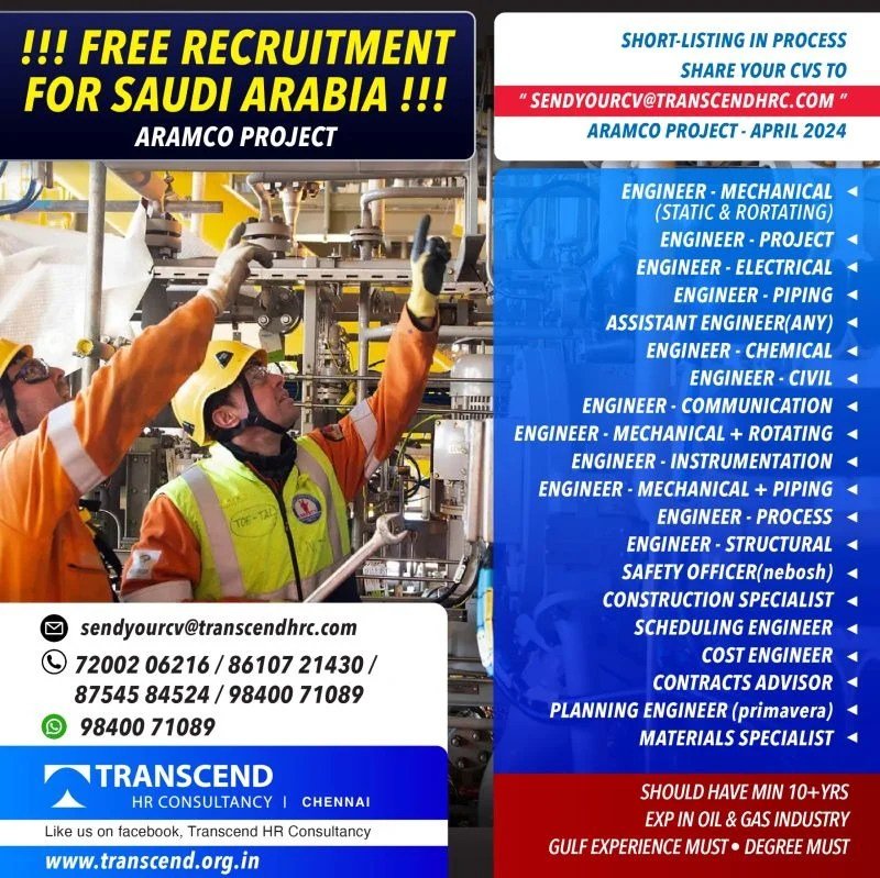 Free Recruitment For Saudi Arabia – Aramco Project 2024