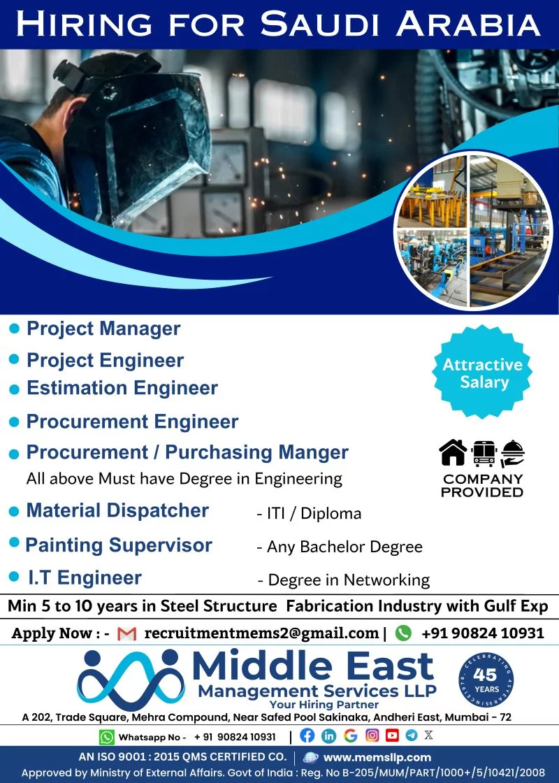 Gulf Job vacancyHiring for Saudi ArabiaBy Assignment AbroadPublished on: June 12, 2024 ---Advertisement---Apply via email: recruitmentmems2@gmail.com WhatsApp No: +91 90824 10931Related Posts:Assignment Abroad Times 10th January 2026Assignment Abroad Times – 31st December 2025Urgent Requirement for DUBAI M/S EMIRATES COMPANY –…Urgent Requirement for DUBAI M/S FOURTH DIMENSION…Urgent Requirement for DUBAI M/S ALEMCO COMPANY –…Assignment Abroad Times PDF Today Newspaper, 19… Abroad times Assignment Abroad Assignment Abroad times Gulf job vacancy Overseas assignment