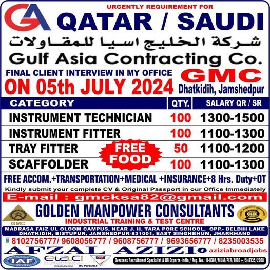 Job Opportunities in Qatar and Saudi Arabia with Gulf Asia Contracting Co.