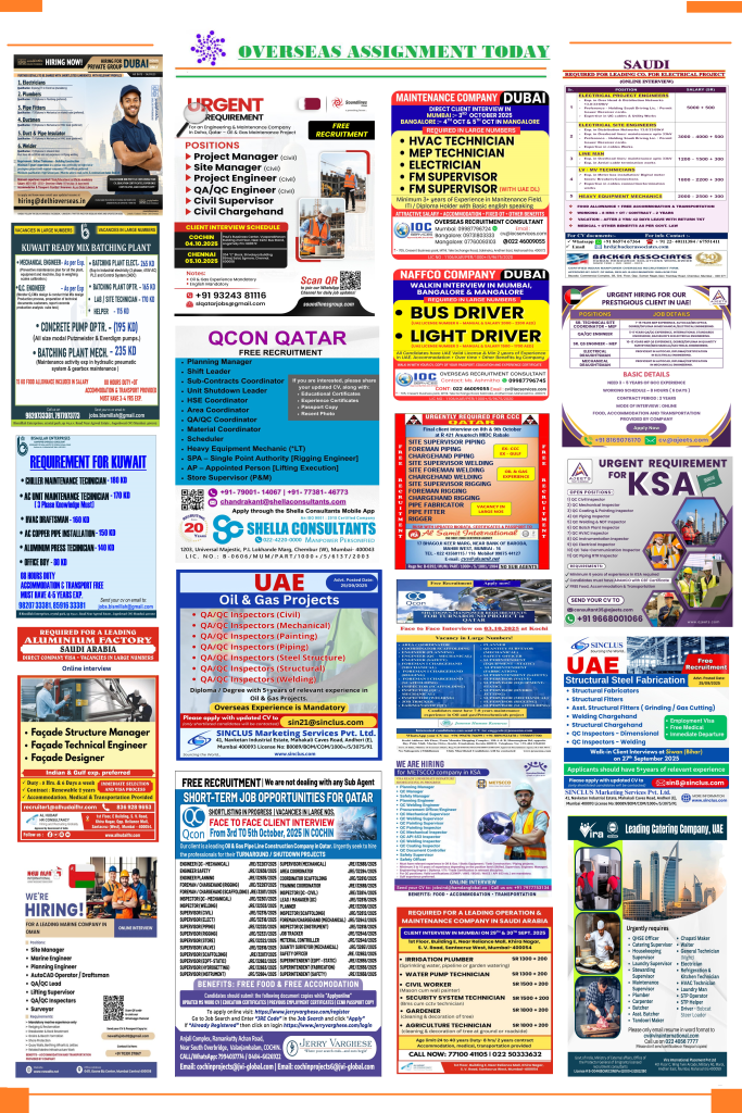 Gulf Job vacancy Assignment Abroad timesOverseas Assignment Today 28-September-2025By Assignment AbroadPublished on: September 28, 2025 ---Advertisement---PDF DOWNLOAD CLICK HEREAssignment Abroad times Related Posts:Assignment Abroad Times – 06th December 2025Overseas Assignment Abroad Times 23-November-2025Assignment Abroad Times PDF Today Newspaper, 19…Assignment Abroad Times PDF Today Newspaper, 15…Assignment Abroad Times – 12th November 2025Overseas Assignment Today 09-November-2025 Assignment Abroad times assignment abroad times mumbai assignment abroad times paper Gulf job vacancy