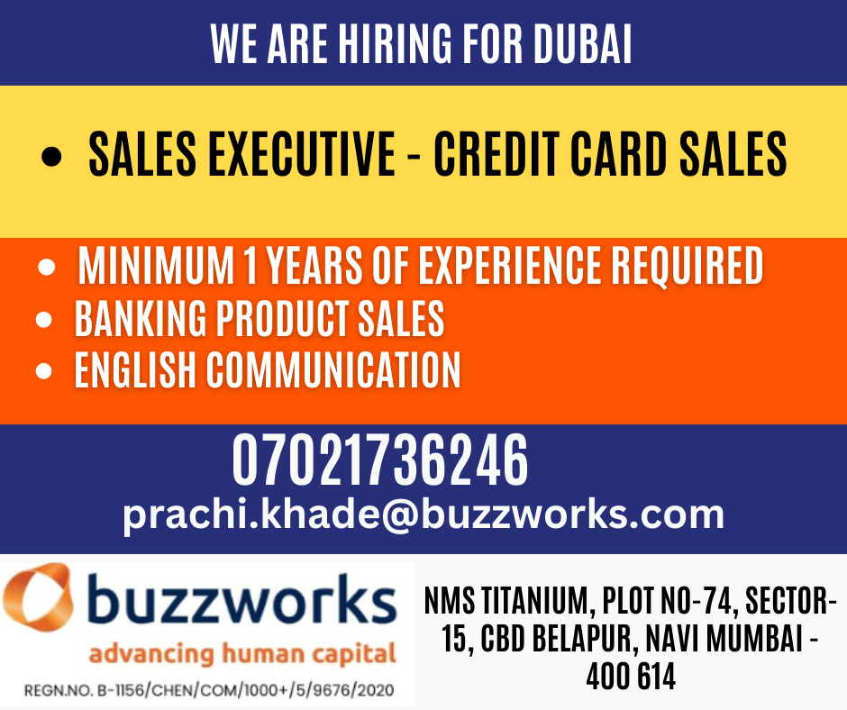 – Minimum 1 Year Experience required in Banking Sales, Credit Card sales