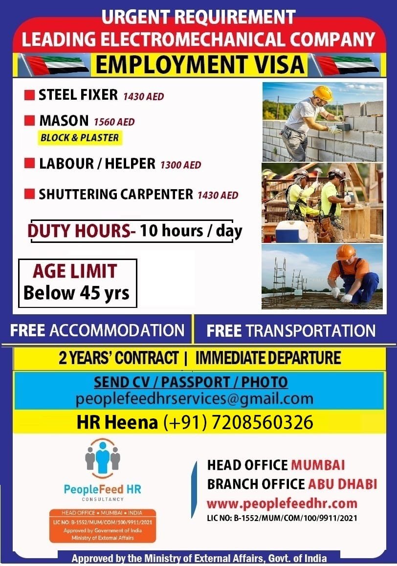 URGENT REQUIREMENT FOR ELECTROMECHANICAL COMPANY ::-:: EMPLOYMENT VISA ::-:: ONLINE INTERVIEW
