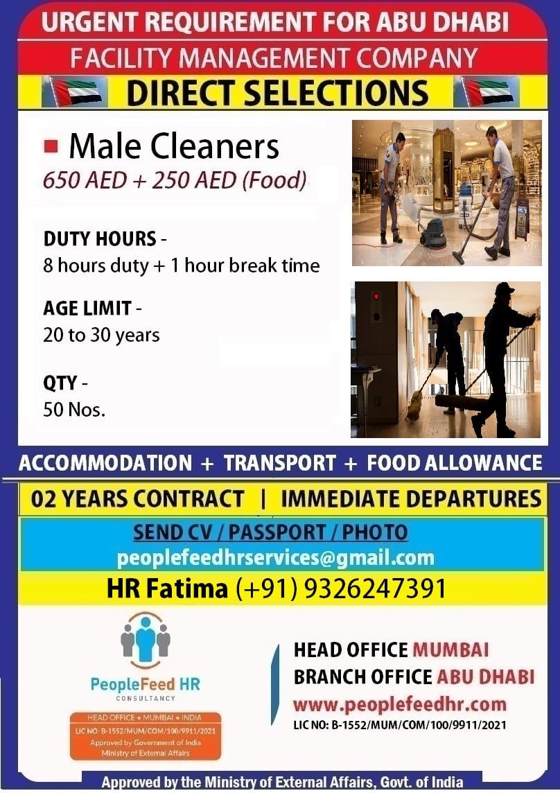 URGENT REQUIREMENT FOR MALE CLEANERS (INDOOR, MALL, SUPERMARKET) ::-:: DIRECT SELECTIONS ::-:: IMMEDIATE DEPARTURE