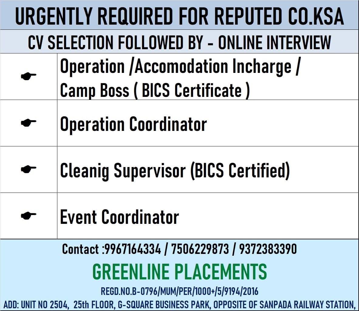 Urgent required for reputed company ksa