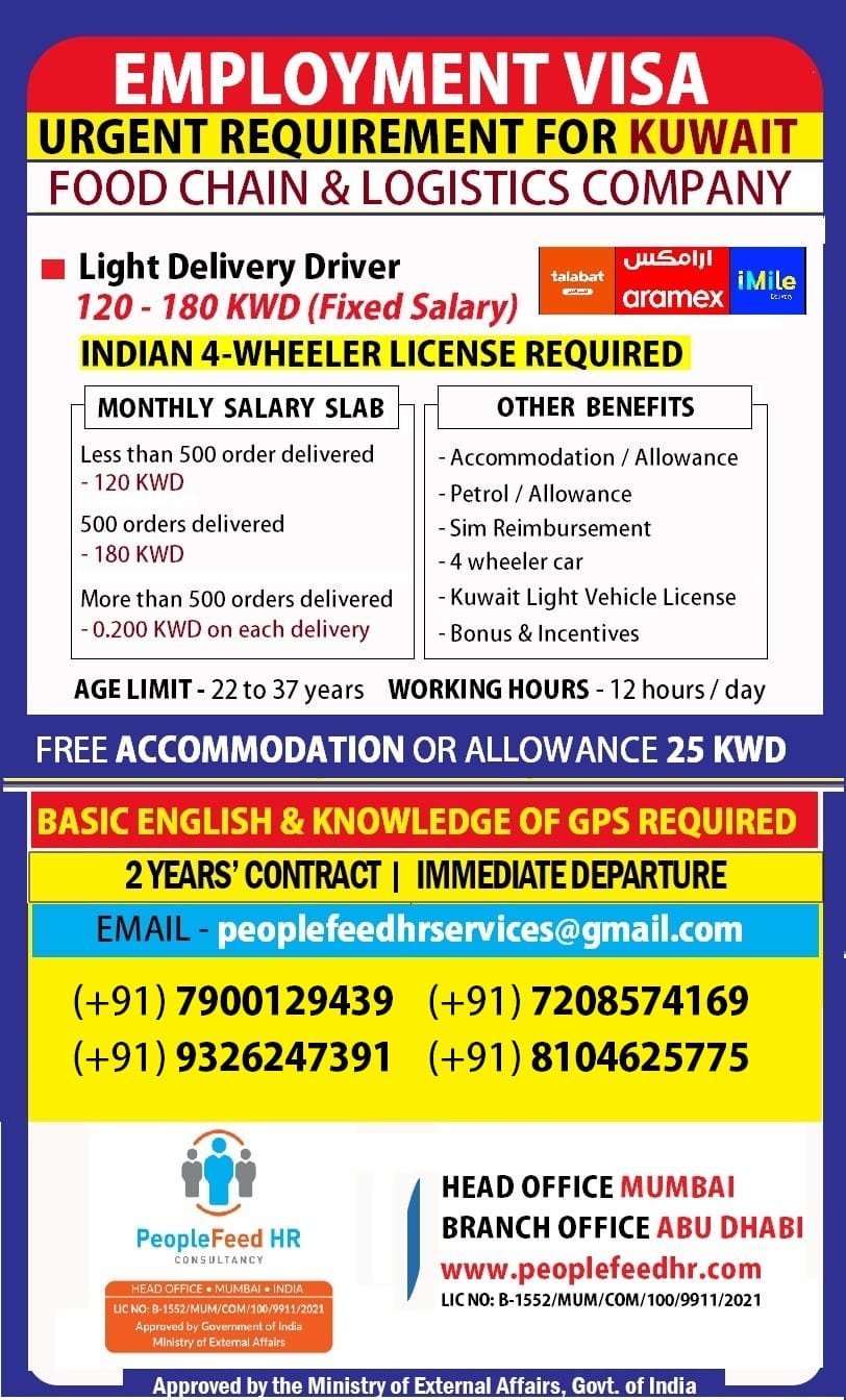 URGENT HIRING LIGHT DELIVERY DRIVERS ::-:: EMPLOYMENT VISA ::-:: KUWAIT