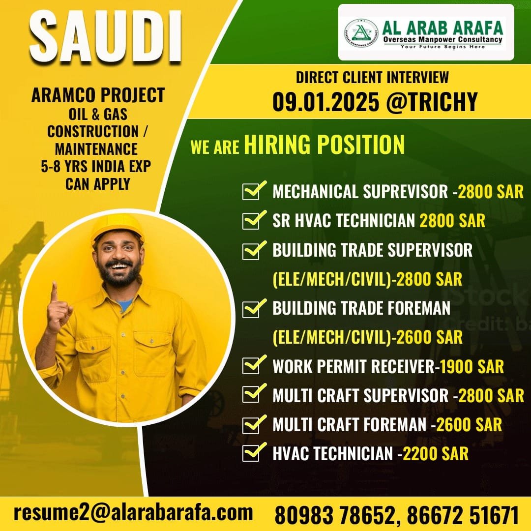 DIRECT CLIENT INTERVIEW ON 09.01.2025 @ TRICHY