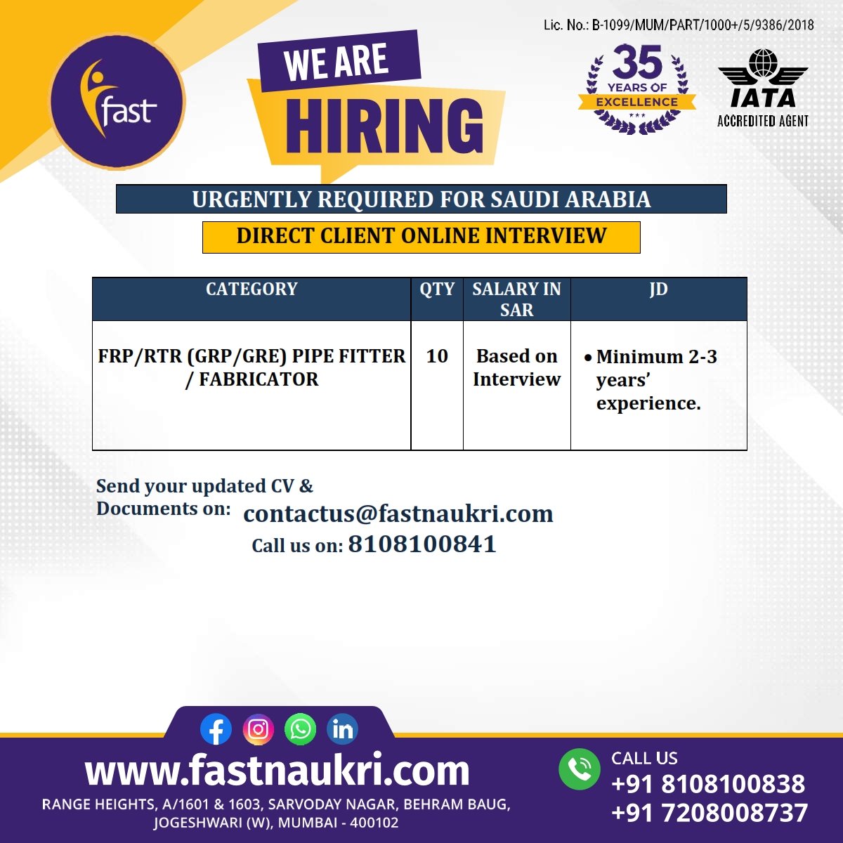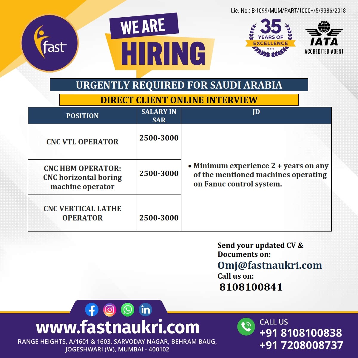 Urgently Required for Saudi Arabia