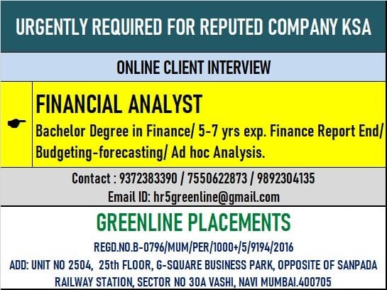 URGENTLY REQUIRED FOR REPUTED COMPANY KSA