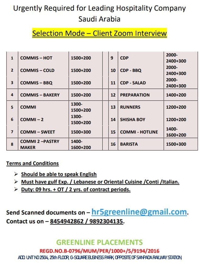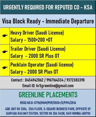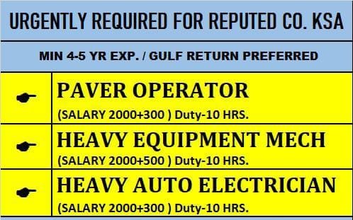 Urgent required for reputed company ksa