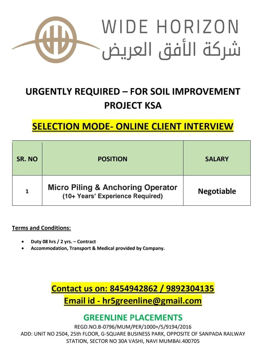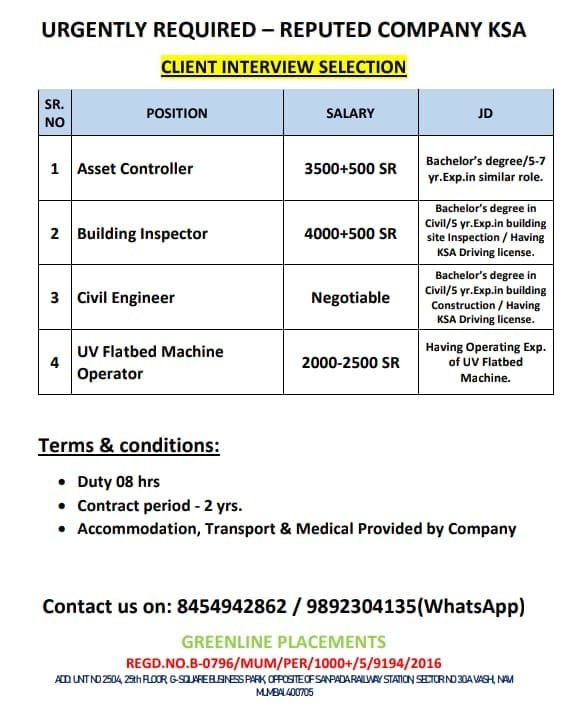 URGENTLY REQUIRED FOR REPUTED COMPANY KSA