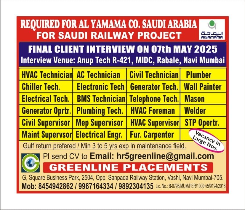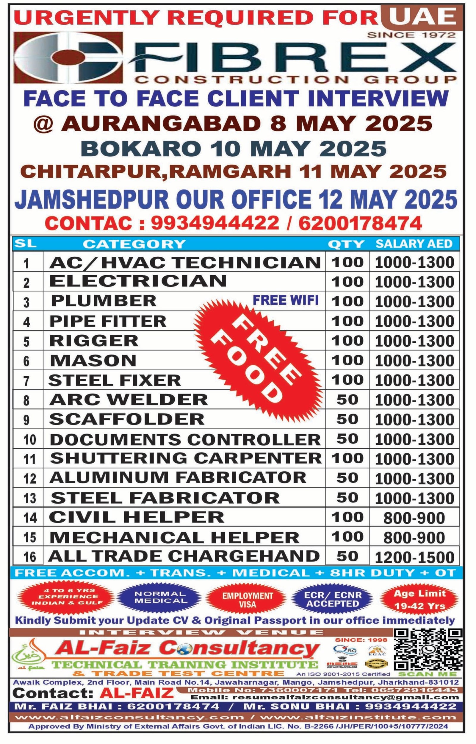 Urgent Requirement for ABUDHABI FIBREX COMPANY – Client Interview At Jamshedpur on 12 MAY 2024