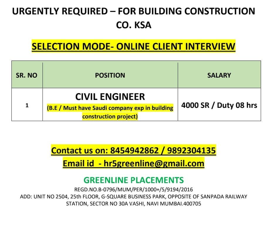 Urgent Requirement for SAUDI ARABIA SRACO COMPANY DAMMAM – Client Interview At Jamshedpur on 5 MAY 2025