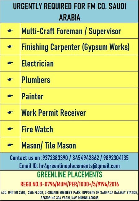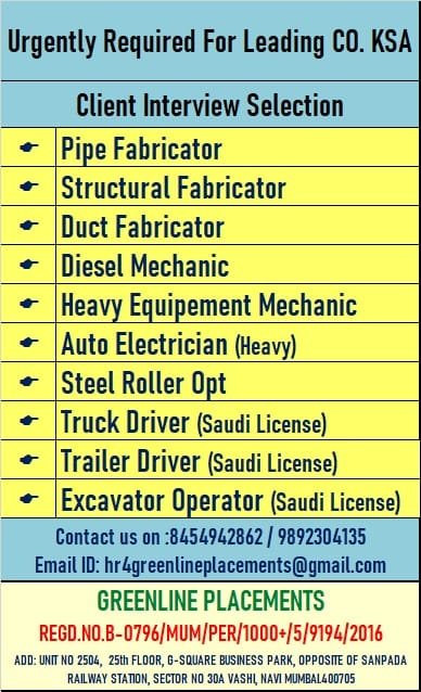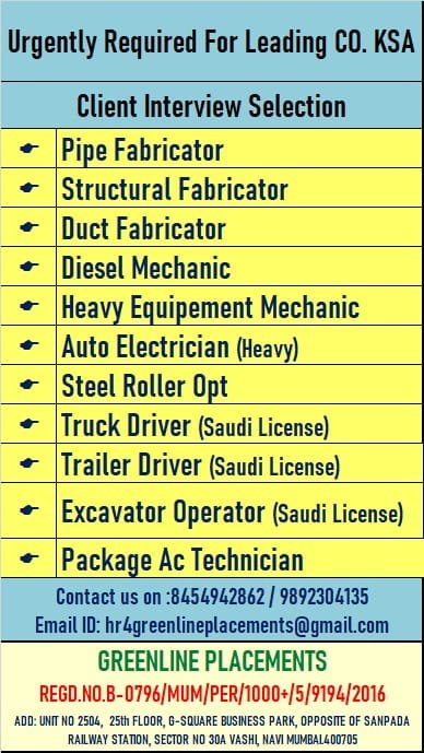 URGENT REQUIREMENT FOR GLOBAL SAUDI ARABIA CLIENT INTERVIEW AT PATNA 24 APRIL 2025