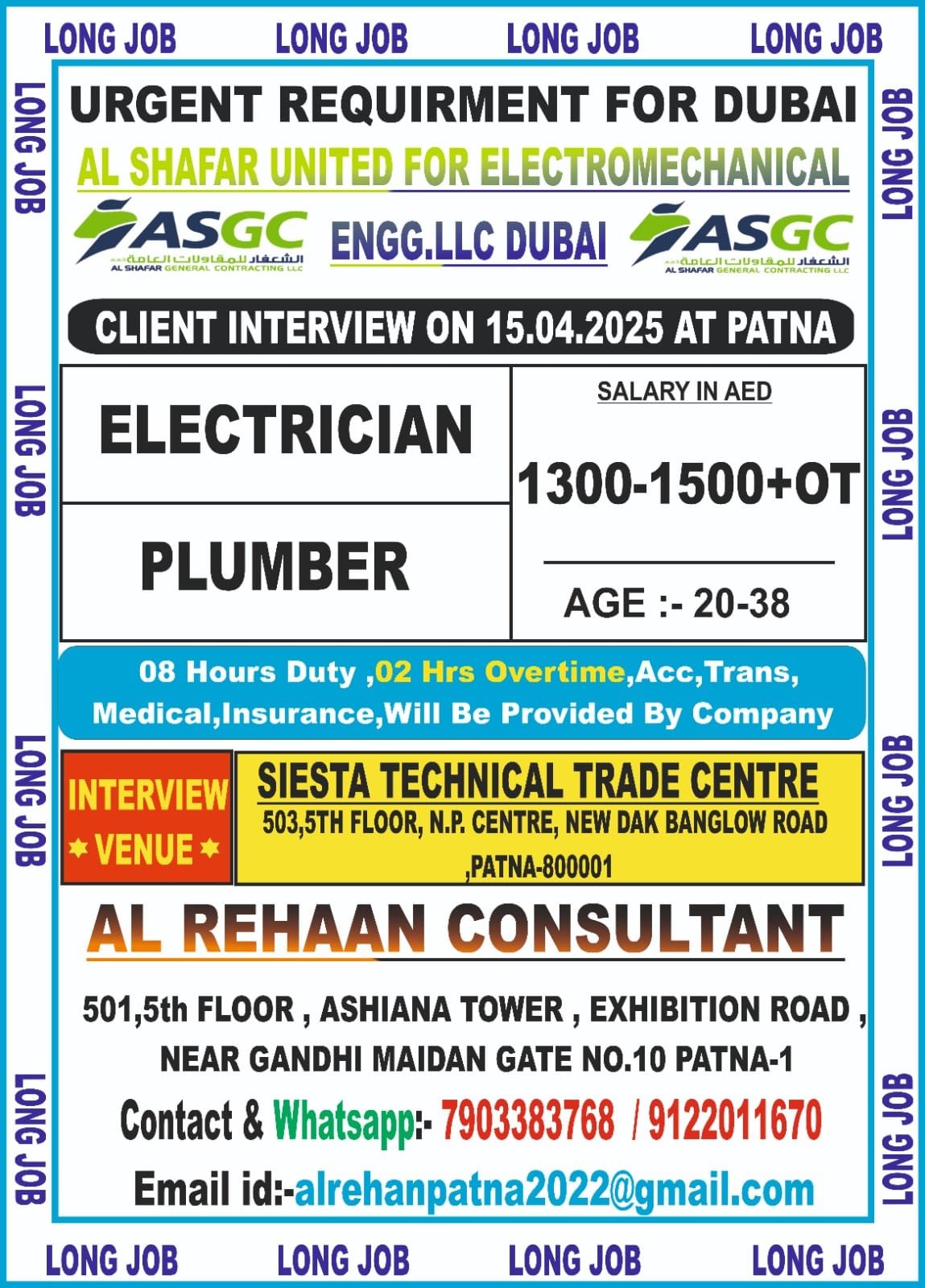 Urgent Requirement for DUBAI AL GHURAIR COMPANY – Client Interview At Jamshedpur on 16th APRIL 2025